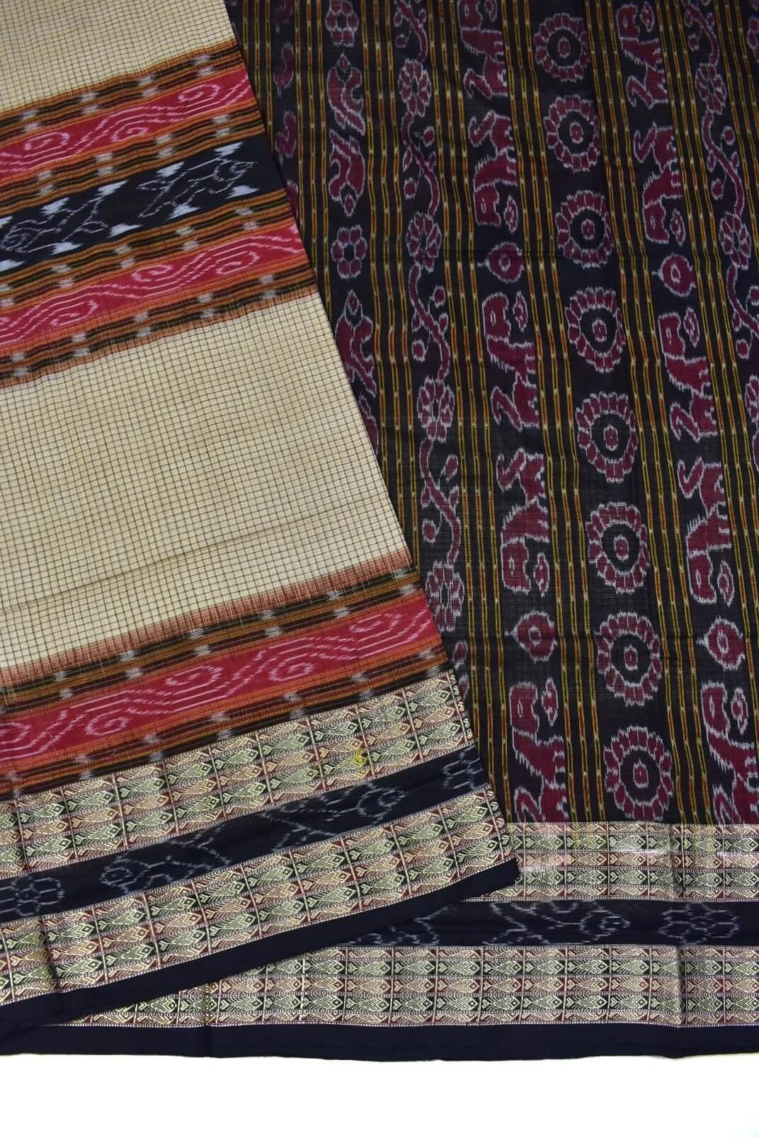 Bisket Colour Pasapali Design Sambalpuri Handloom Cotton Saree