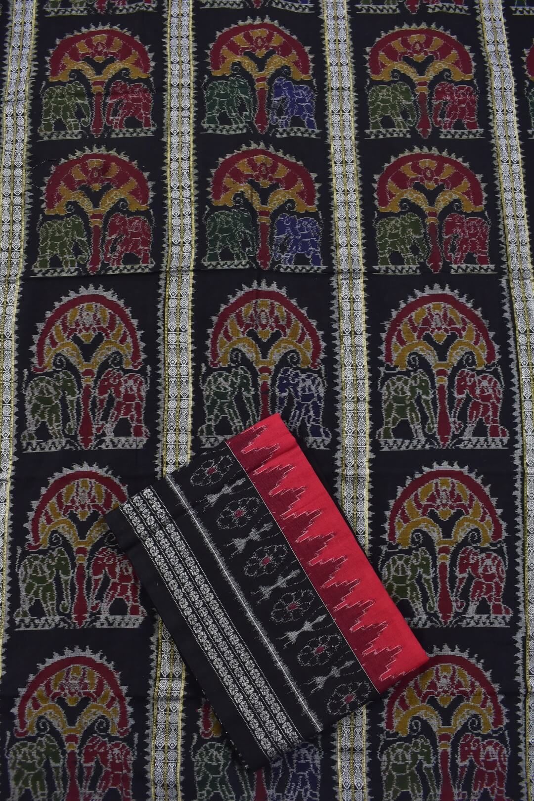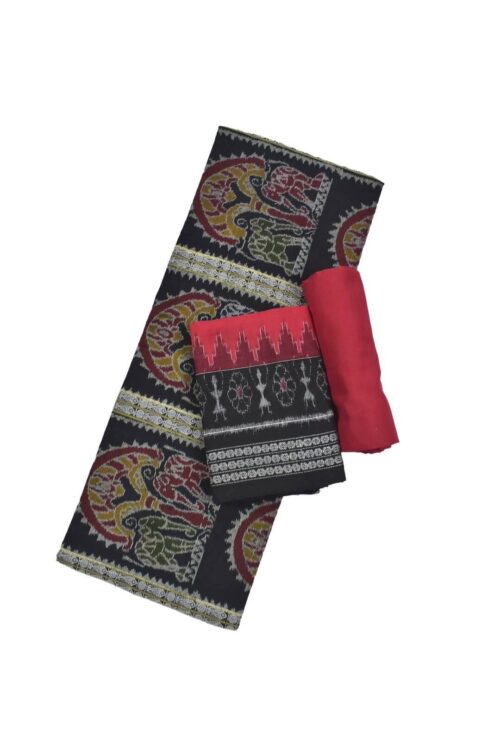 Black Colour Elephant Design Sambalpuri Handloom Cotton Dress Material
