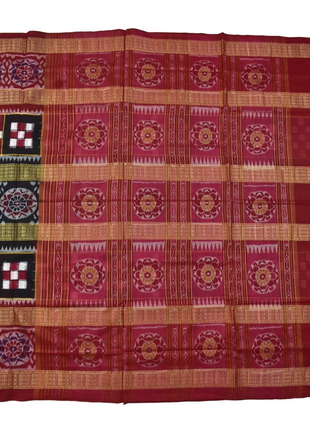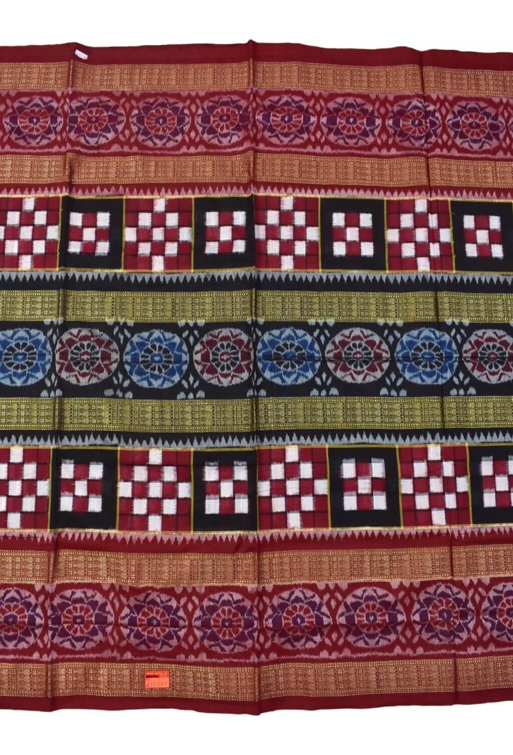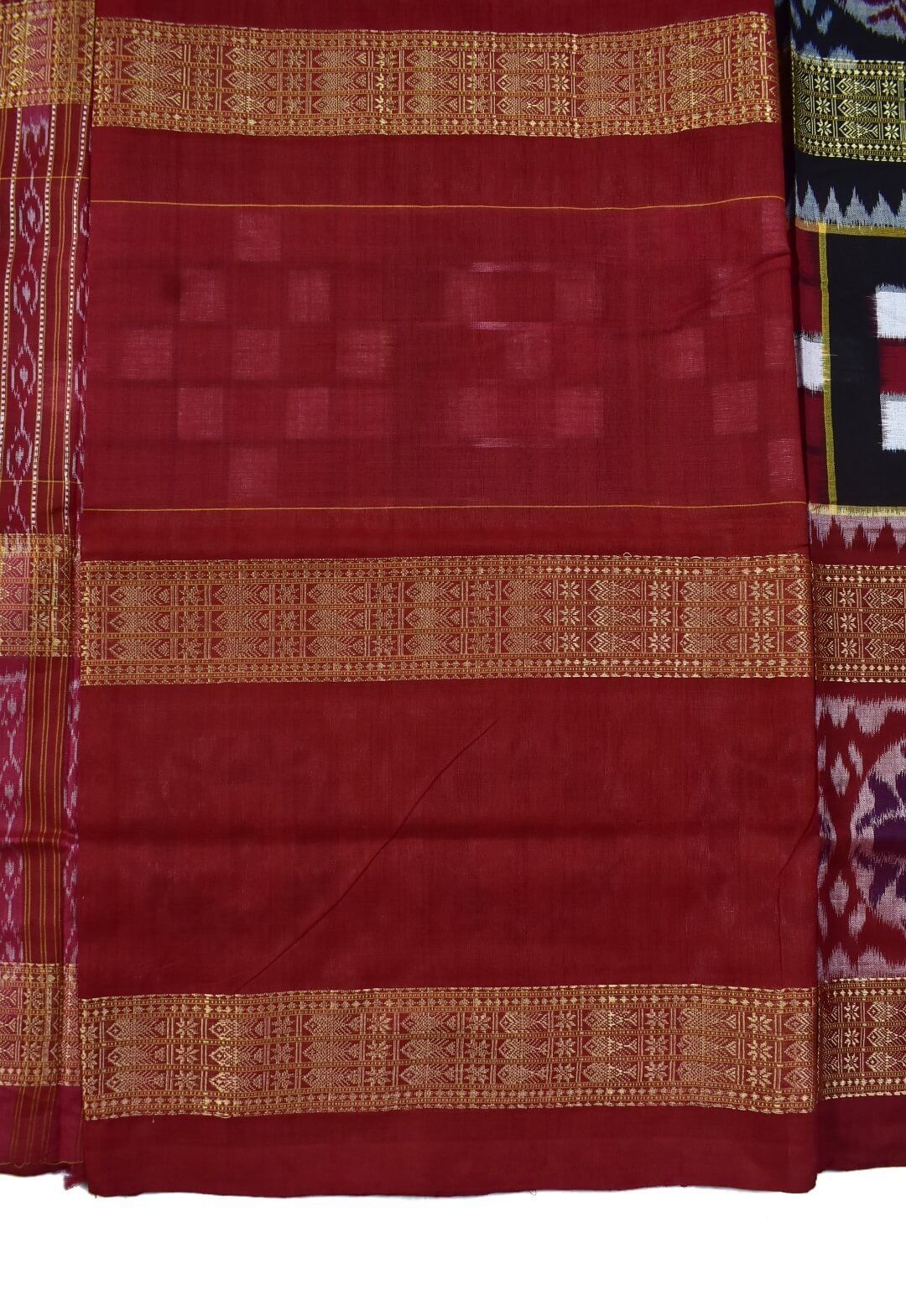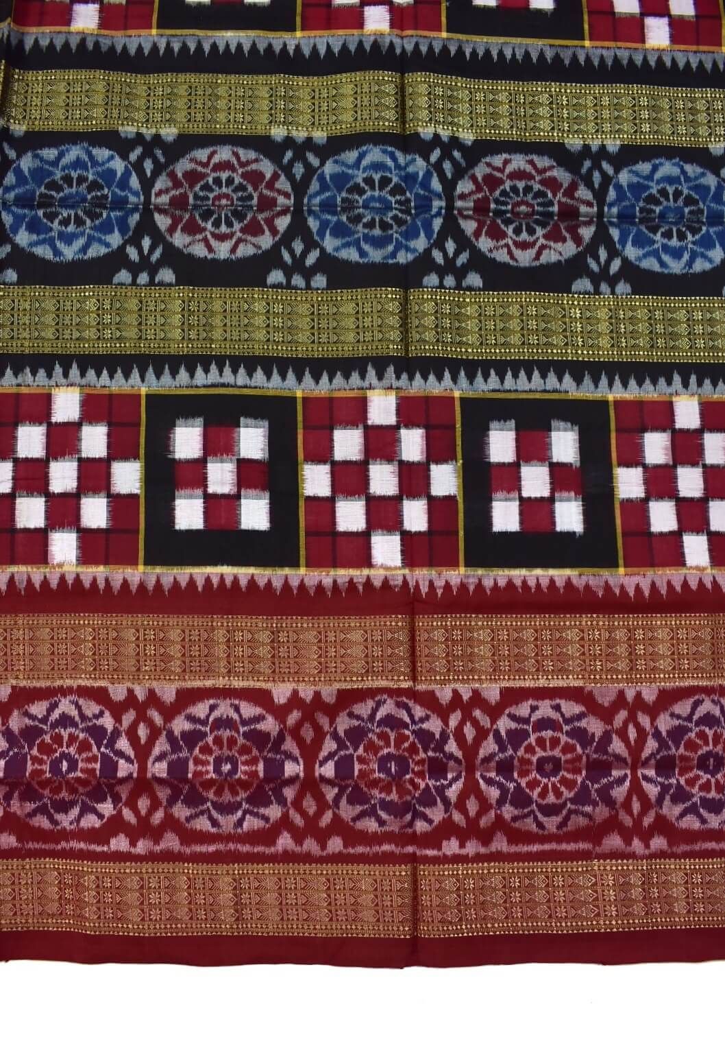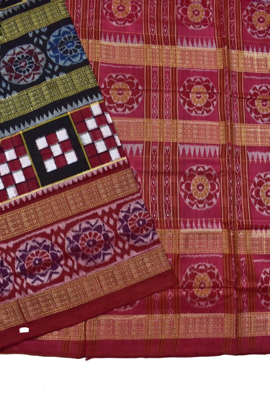 Black Colour Pasapali Design Sambalpuri Handloom Bandha Cotton Saree