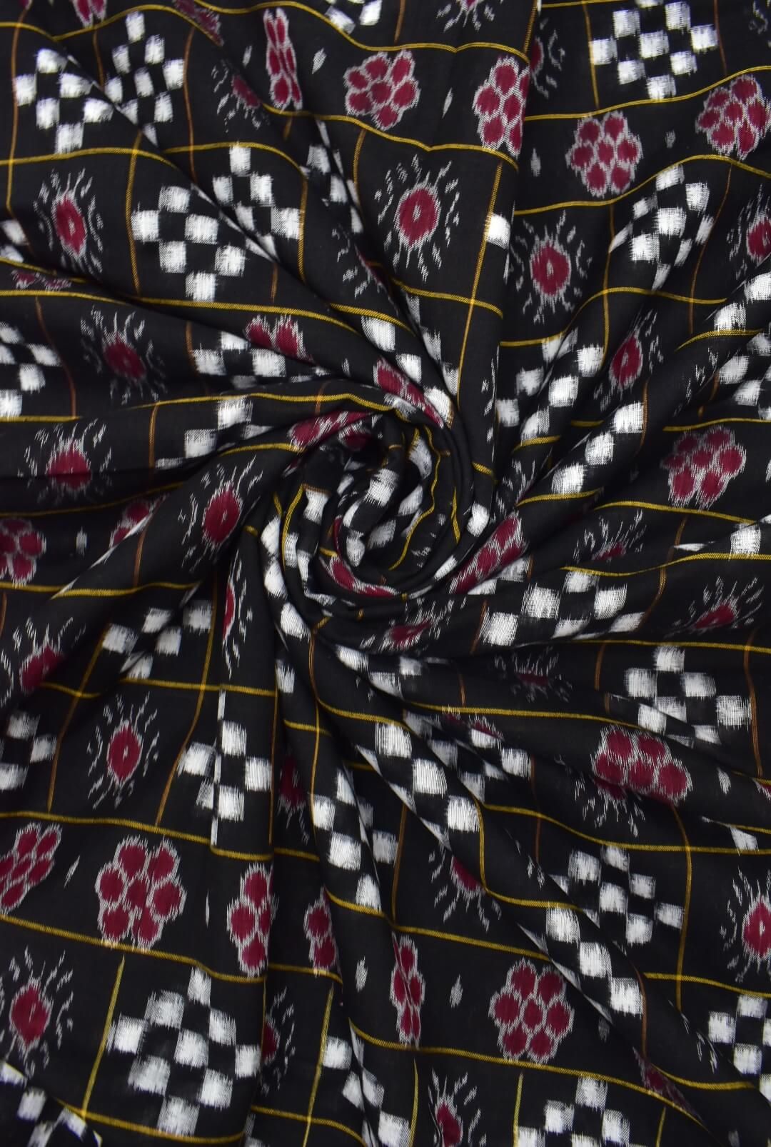 Black Colour Pasapali Design Sambalpuri Handloom Cotton Fabrics