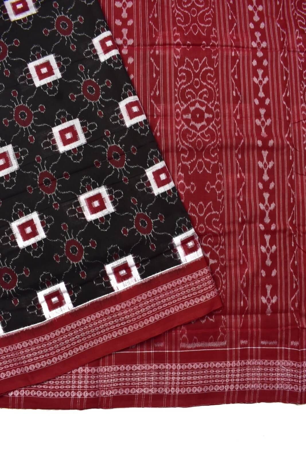 Black Colour Square Design Sambalpuri Handloom Cotton Saree