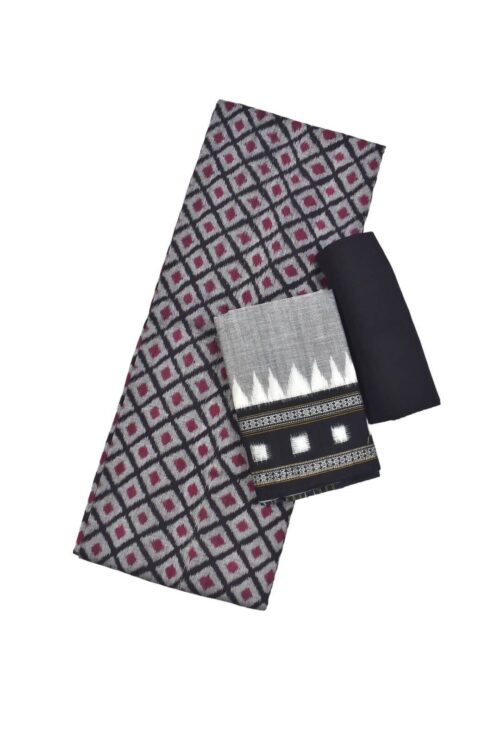 Black-Gray Combination Sambalpuri Handloom Cotton Dress Material