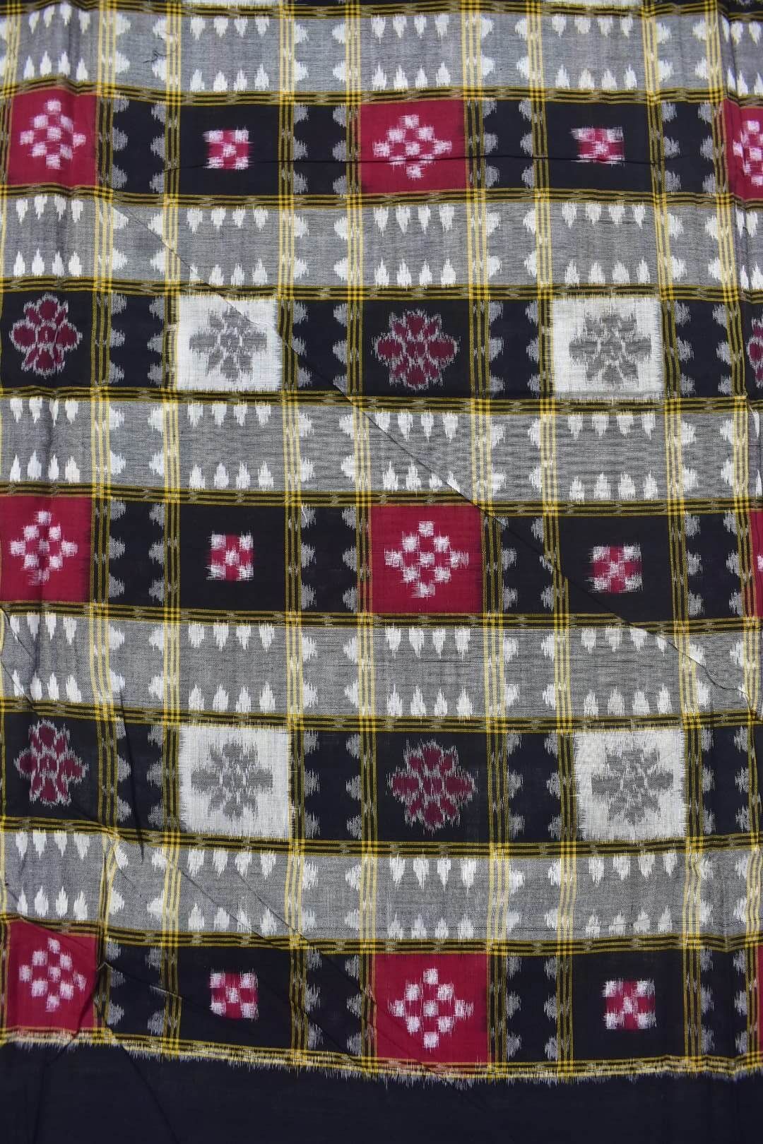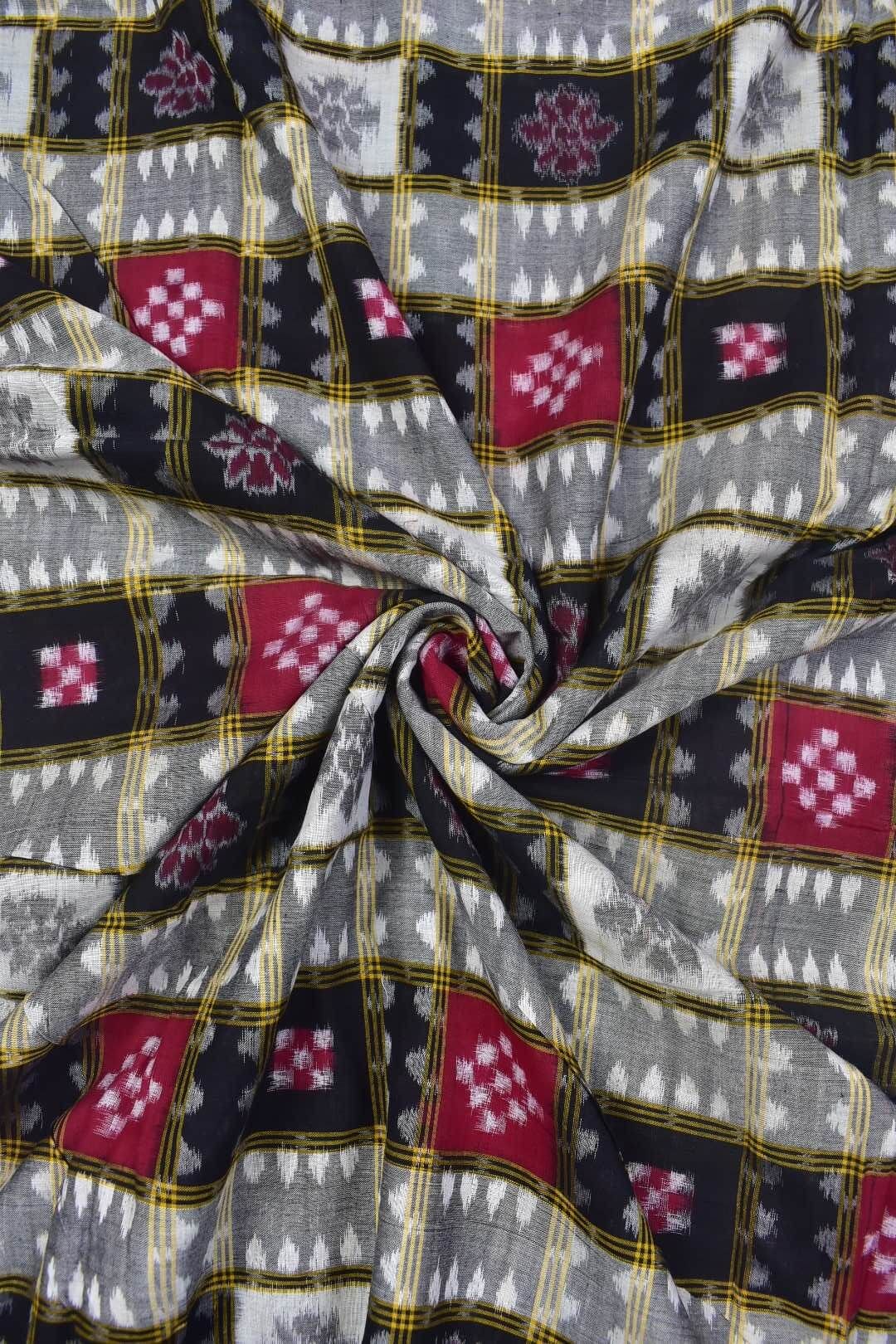 Black-Red Colour Pasapali Design Sambalpuri Handloom Cotton Fabrics
