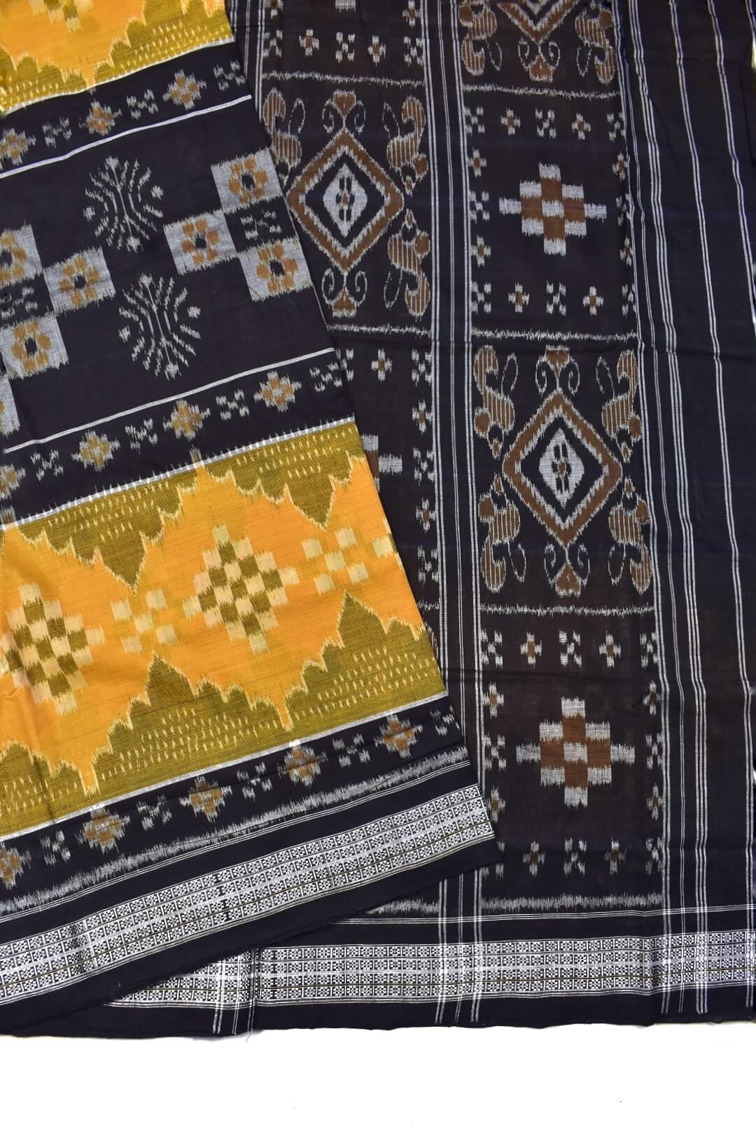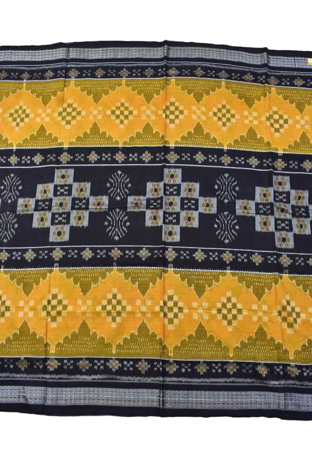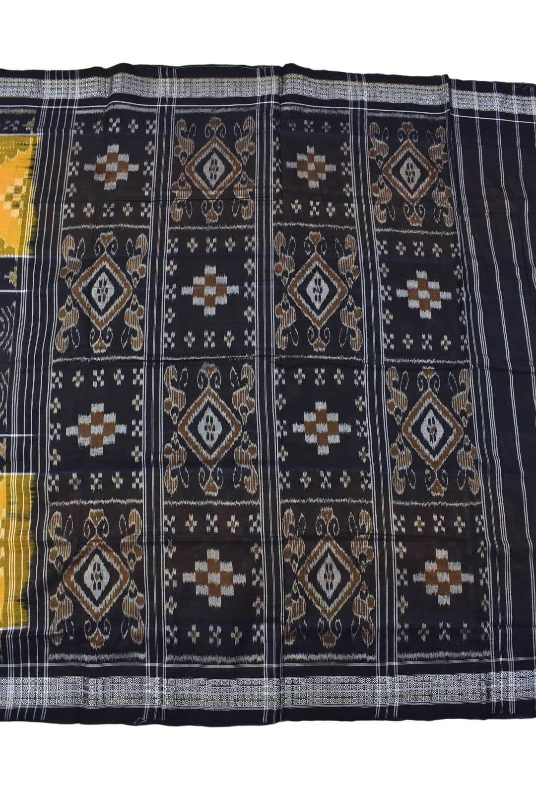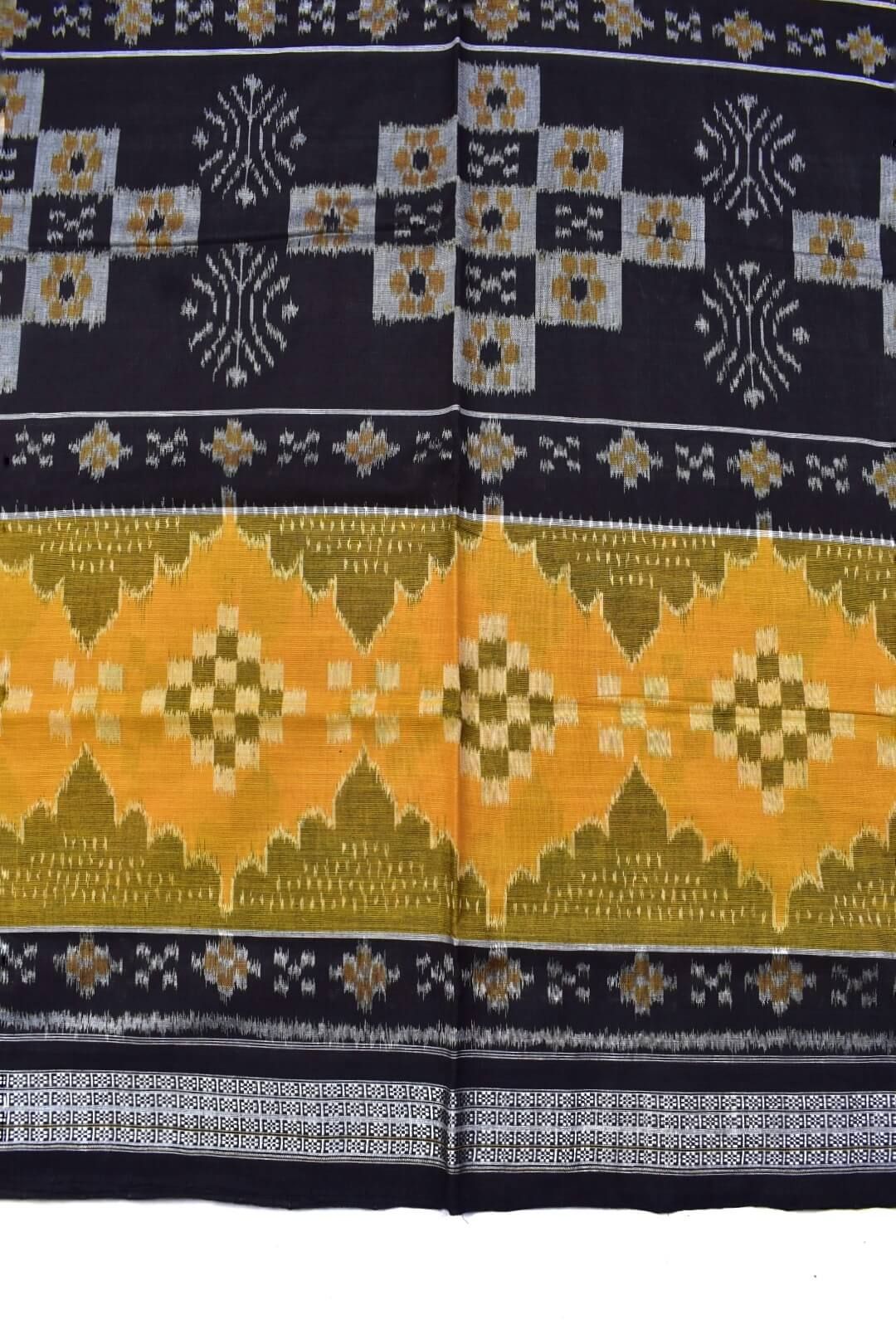 Black-Yellow Combination Sambalpuri Handloom Mania Bandha Cotton Saree