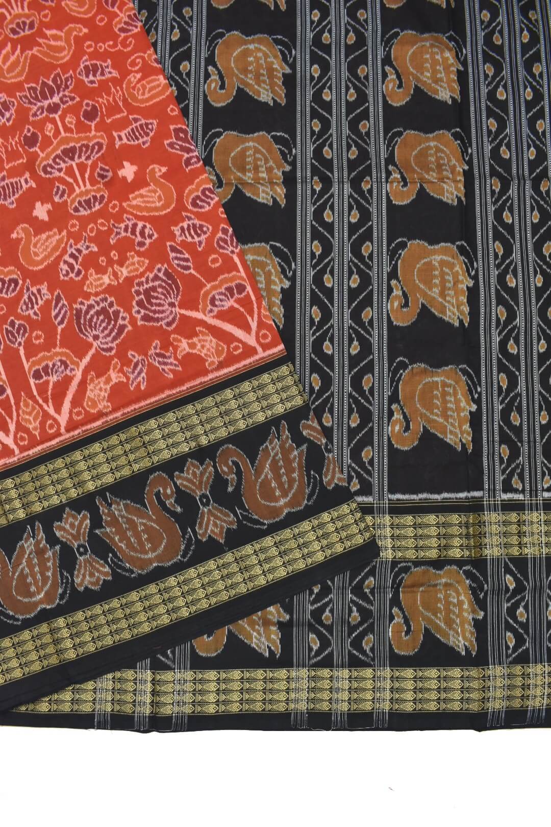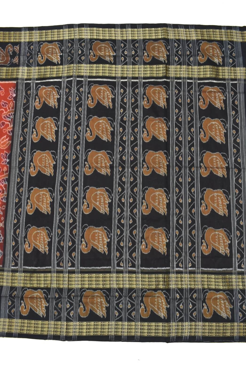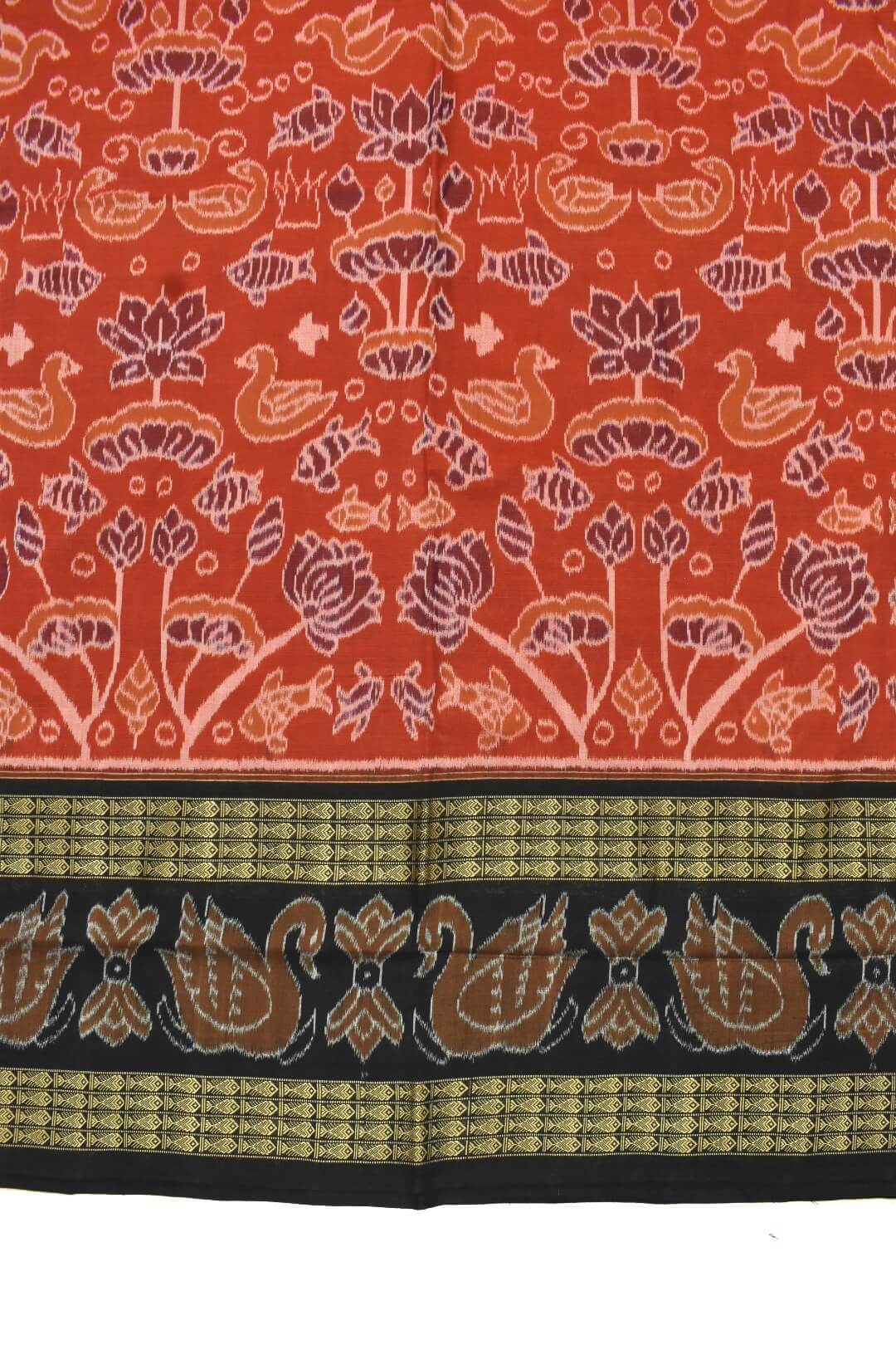 Rust Colour Sambalpuri Handloom Cotton Bandha Saree