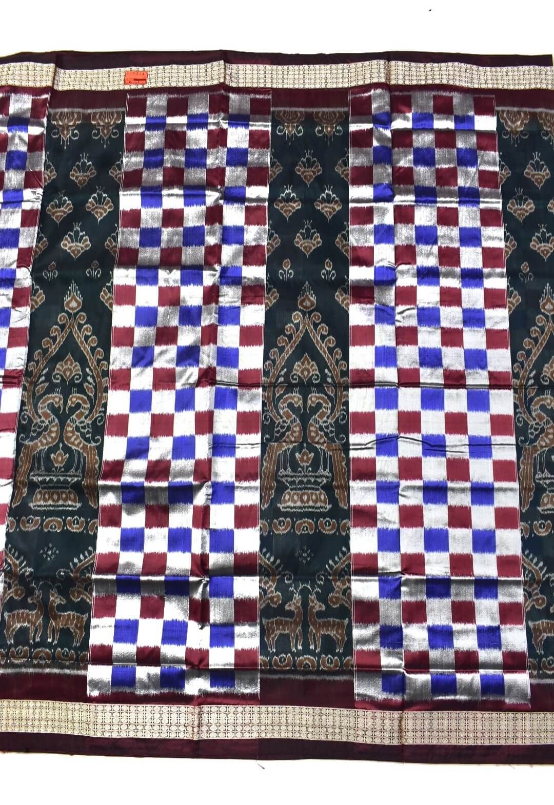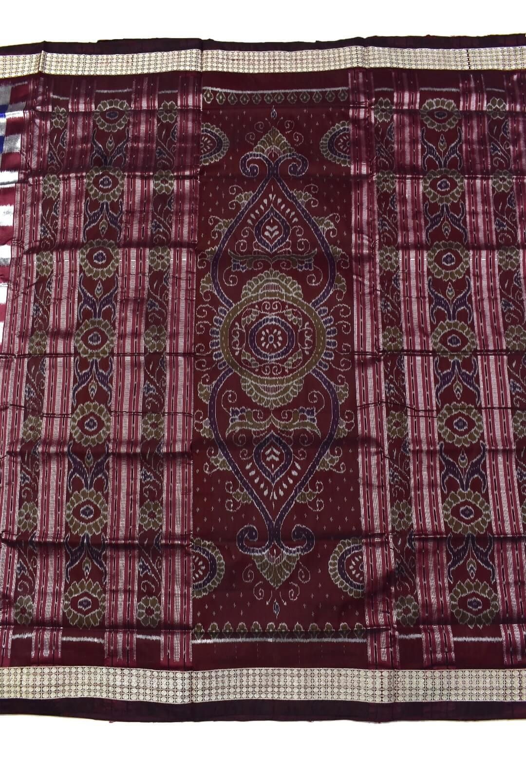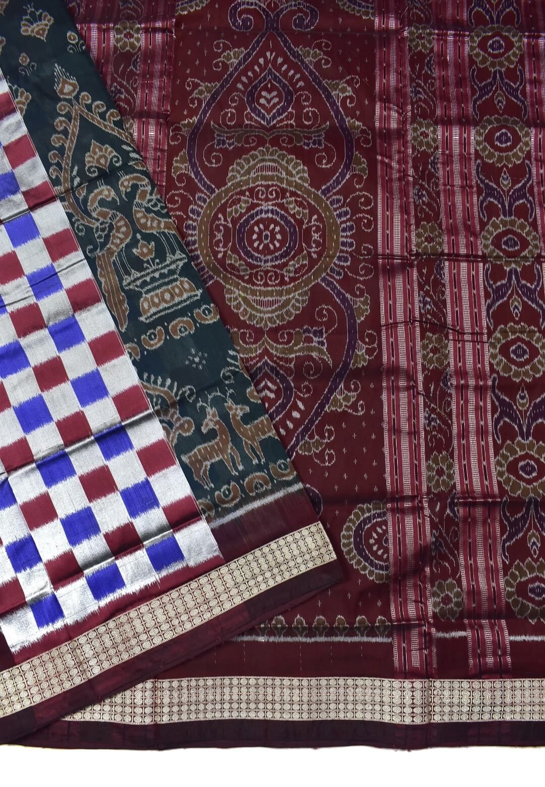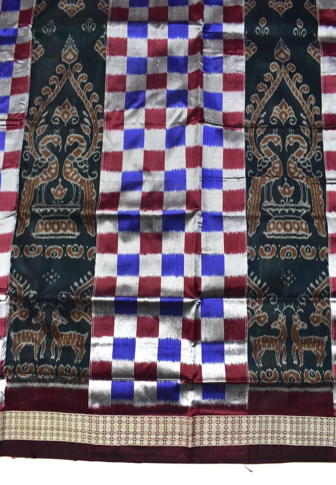 Blue-Maroon Kuthi Design Sambalpuri Handloom Bandha Silk Saree