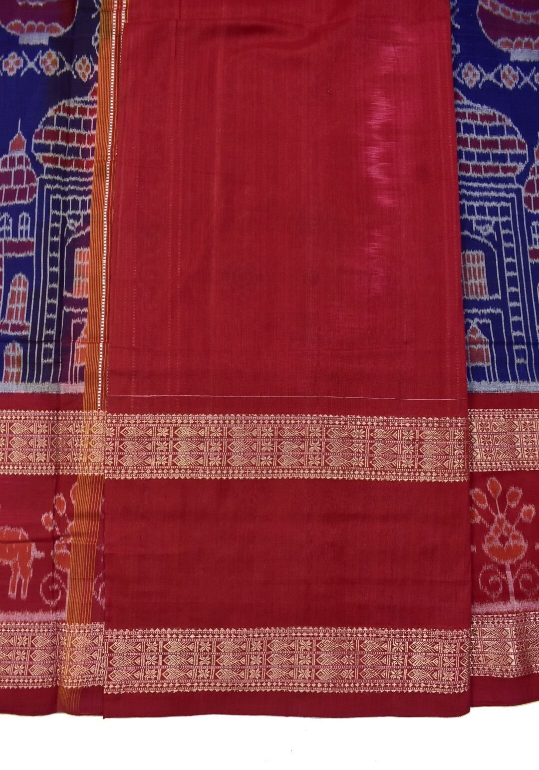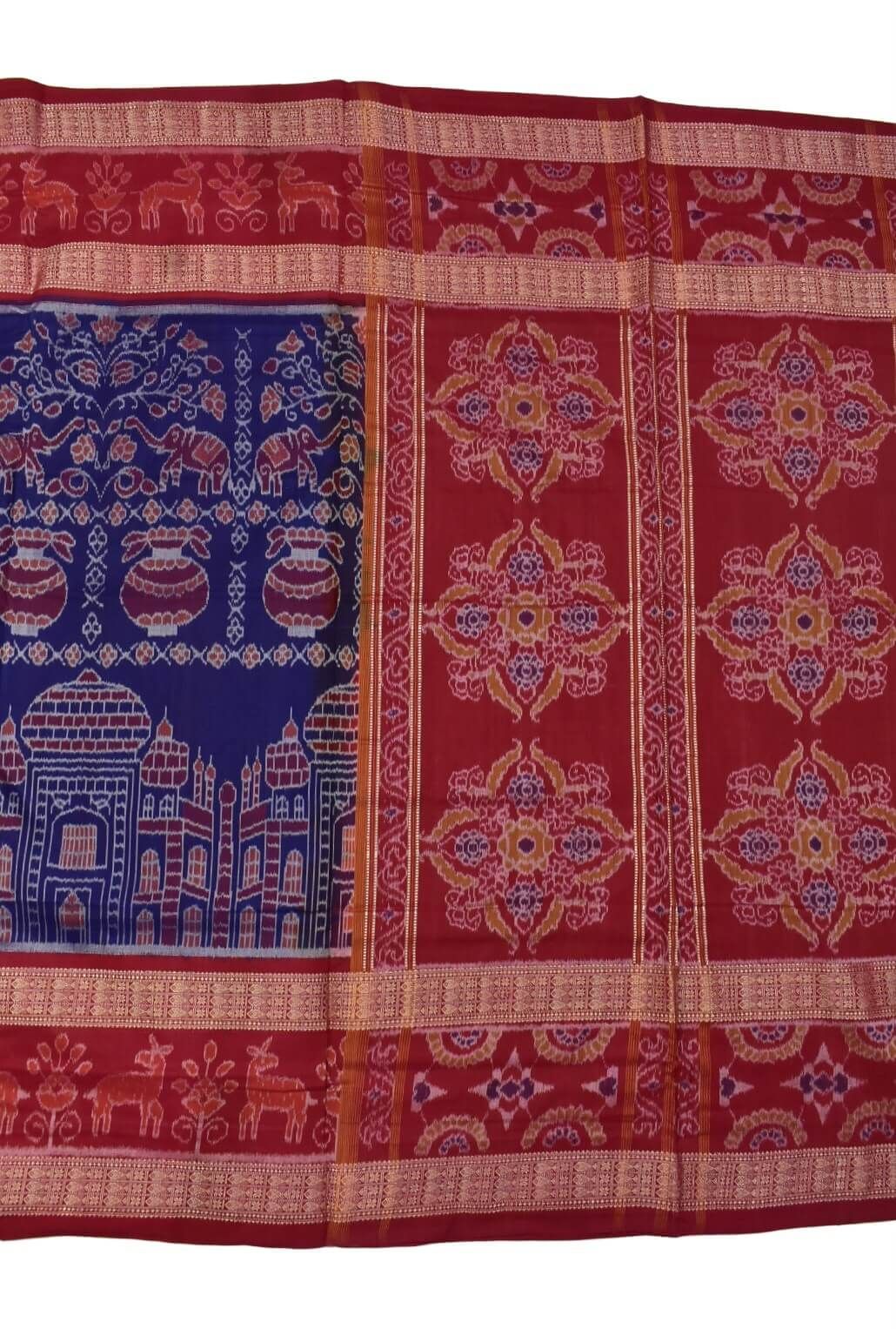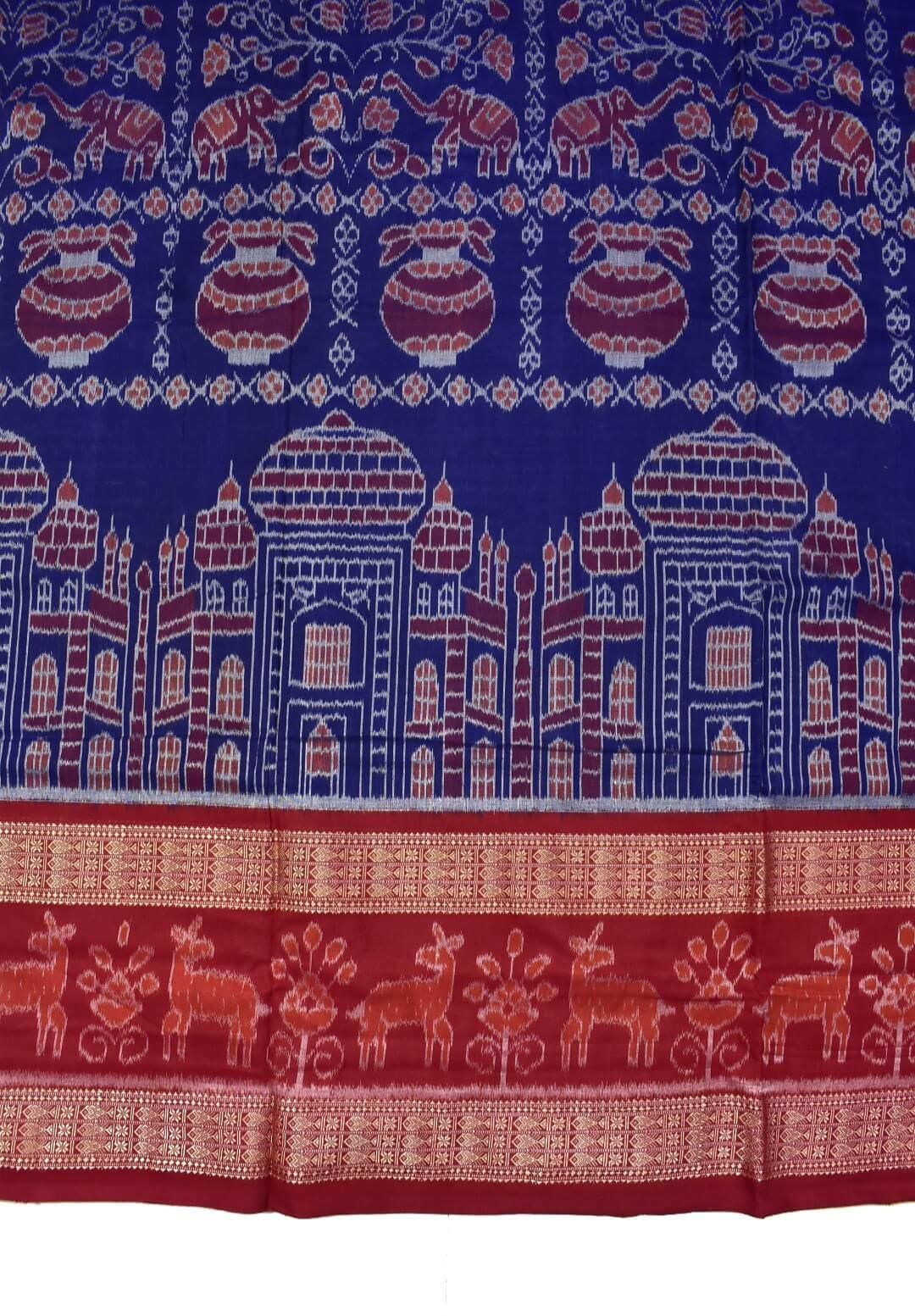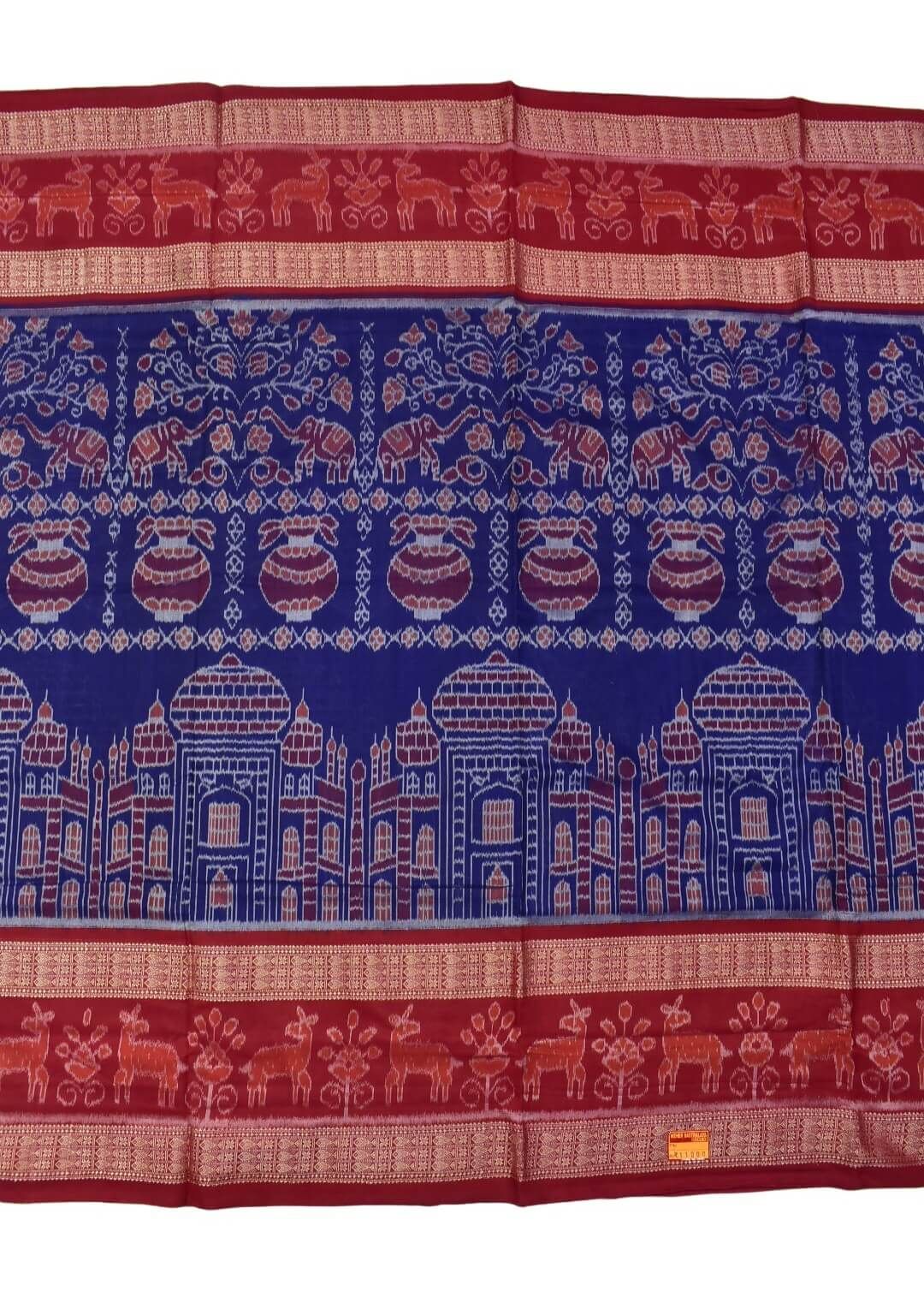 Blue-Red Combination Double Border Sambalpuri Handloom Cotton Saree