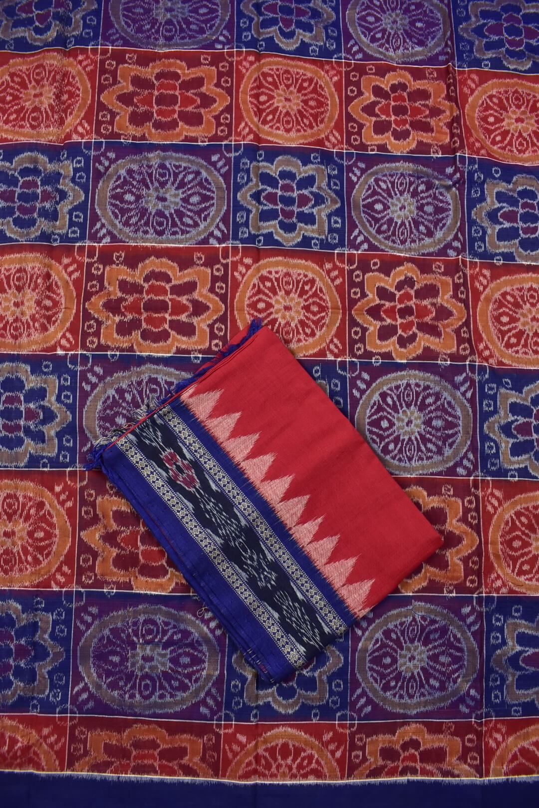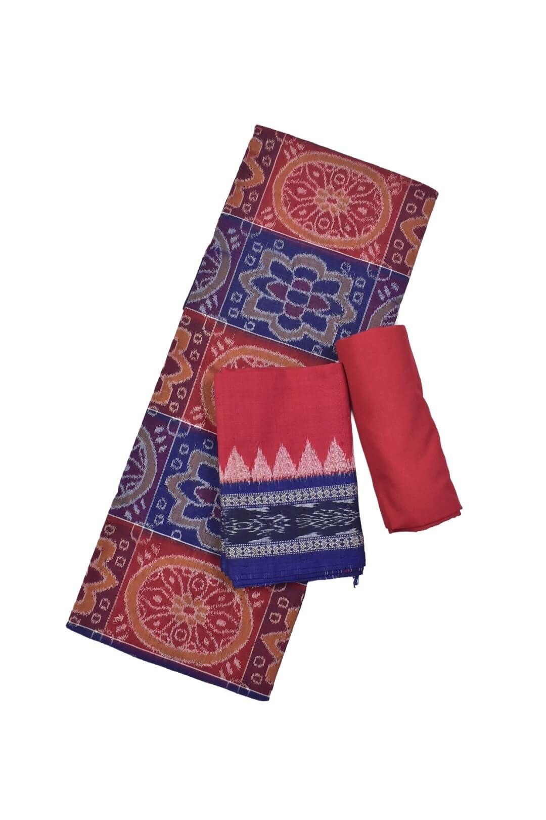 Blue-Red Combination Sambalpuri Handloom Cotton Dress Material