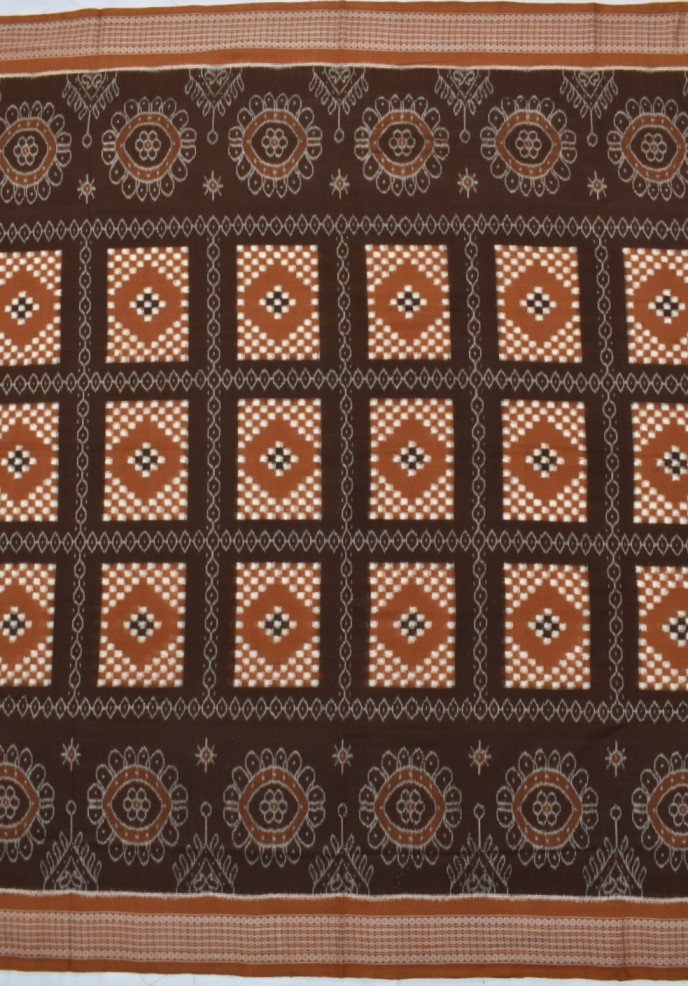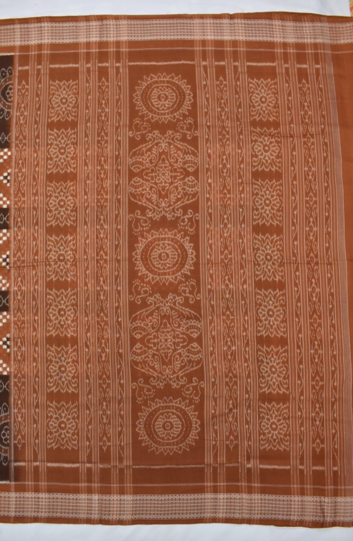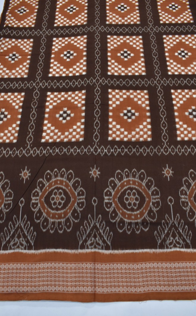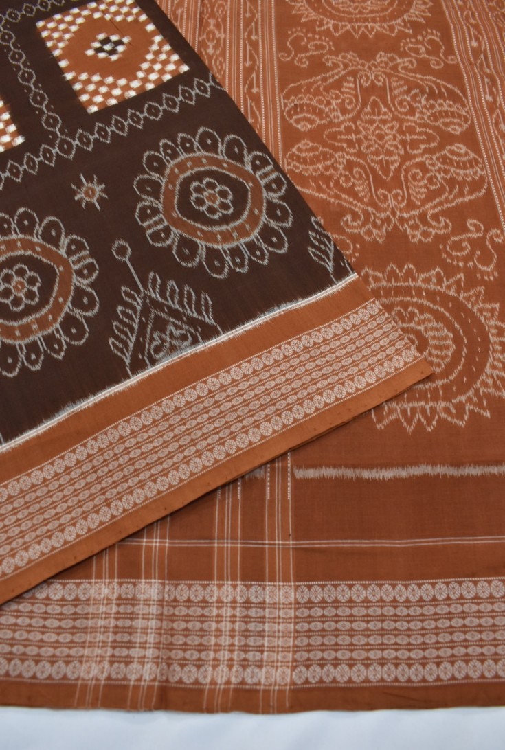 Brown Colour Pasapali Design Sambalpuri Handloom Cotton Saree