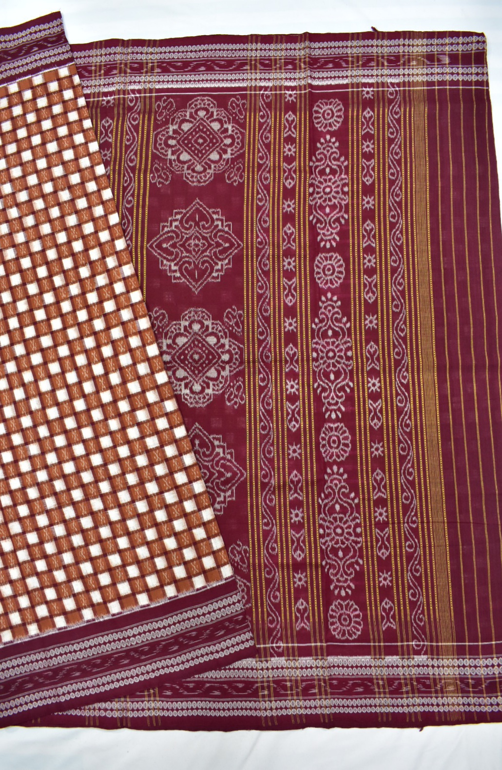 Brown Colour Pasapali Design Sambalpuri Handloom Cotton Saree