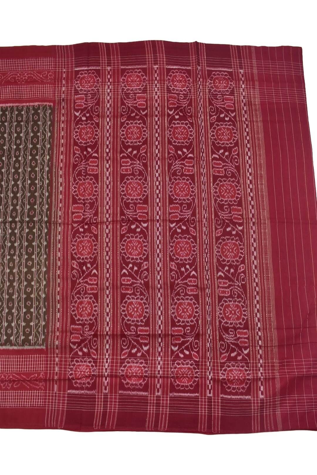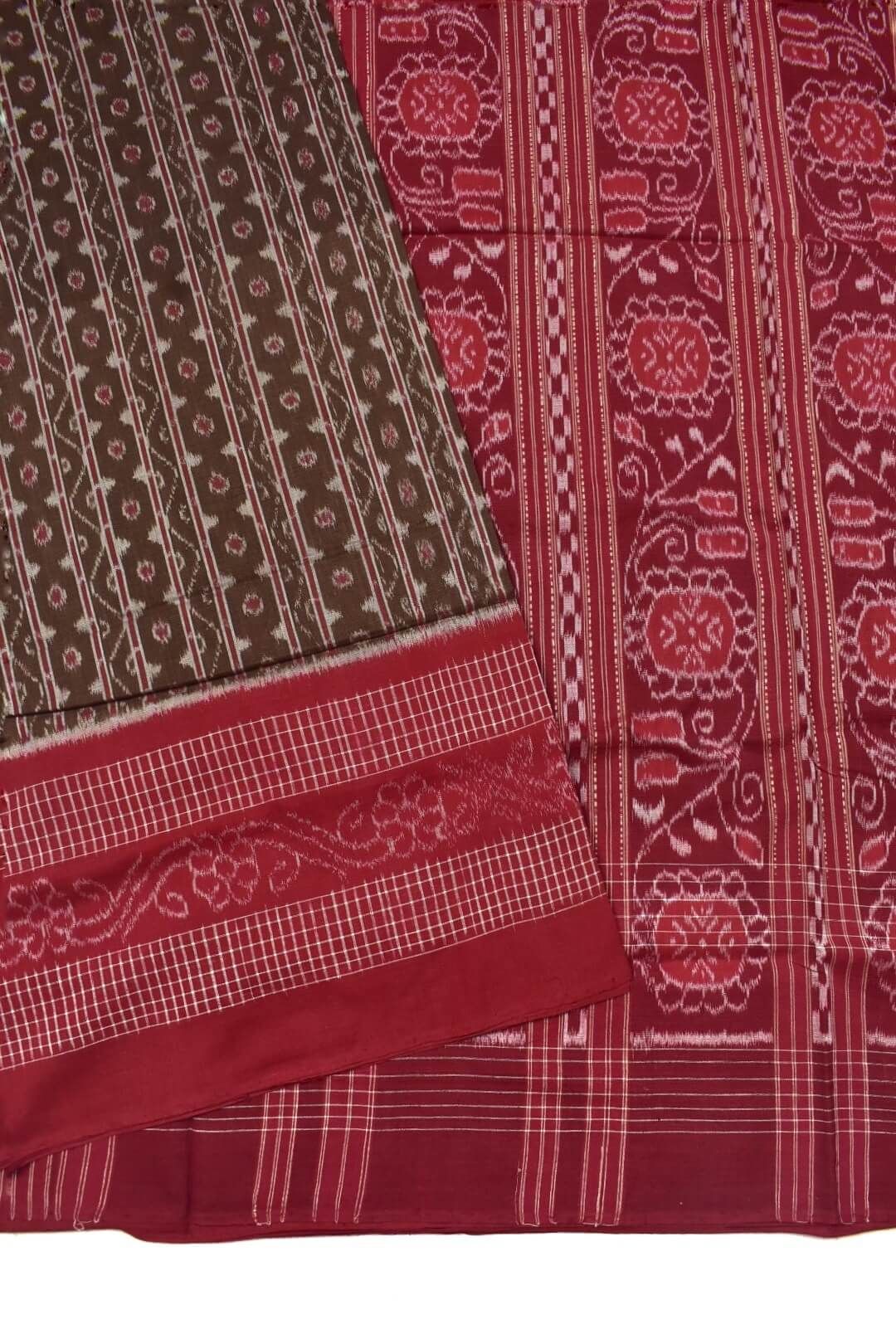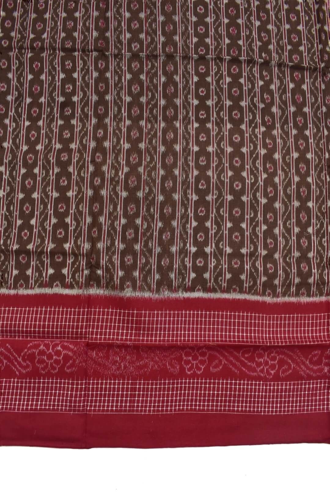 Brown Colour Plane Border Sambalpuri Handloom Cotton Saree