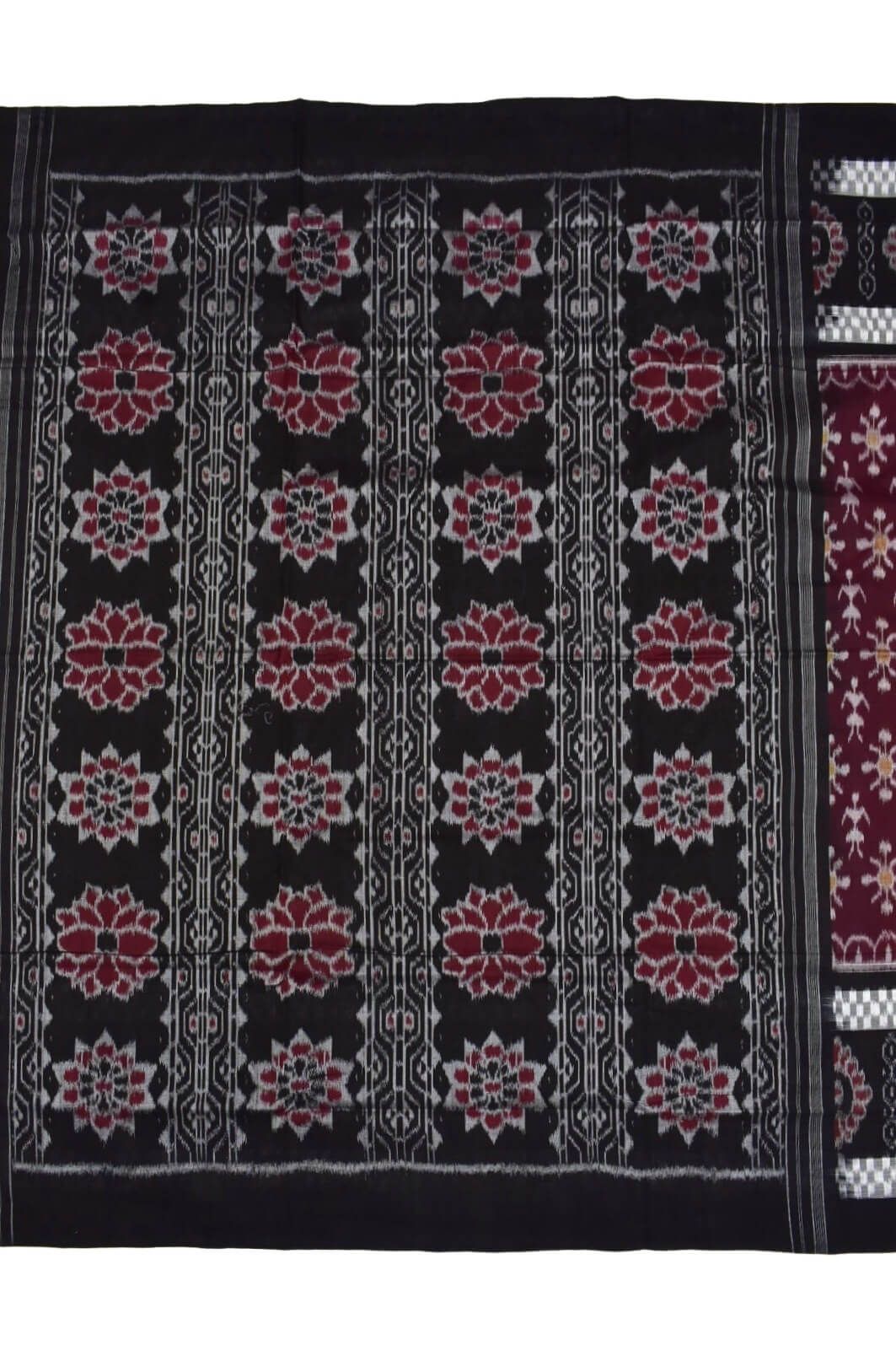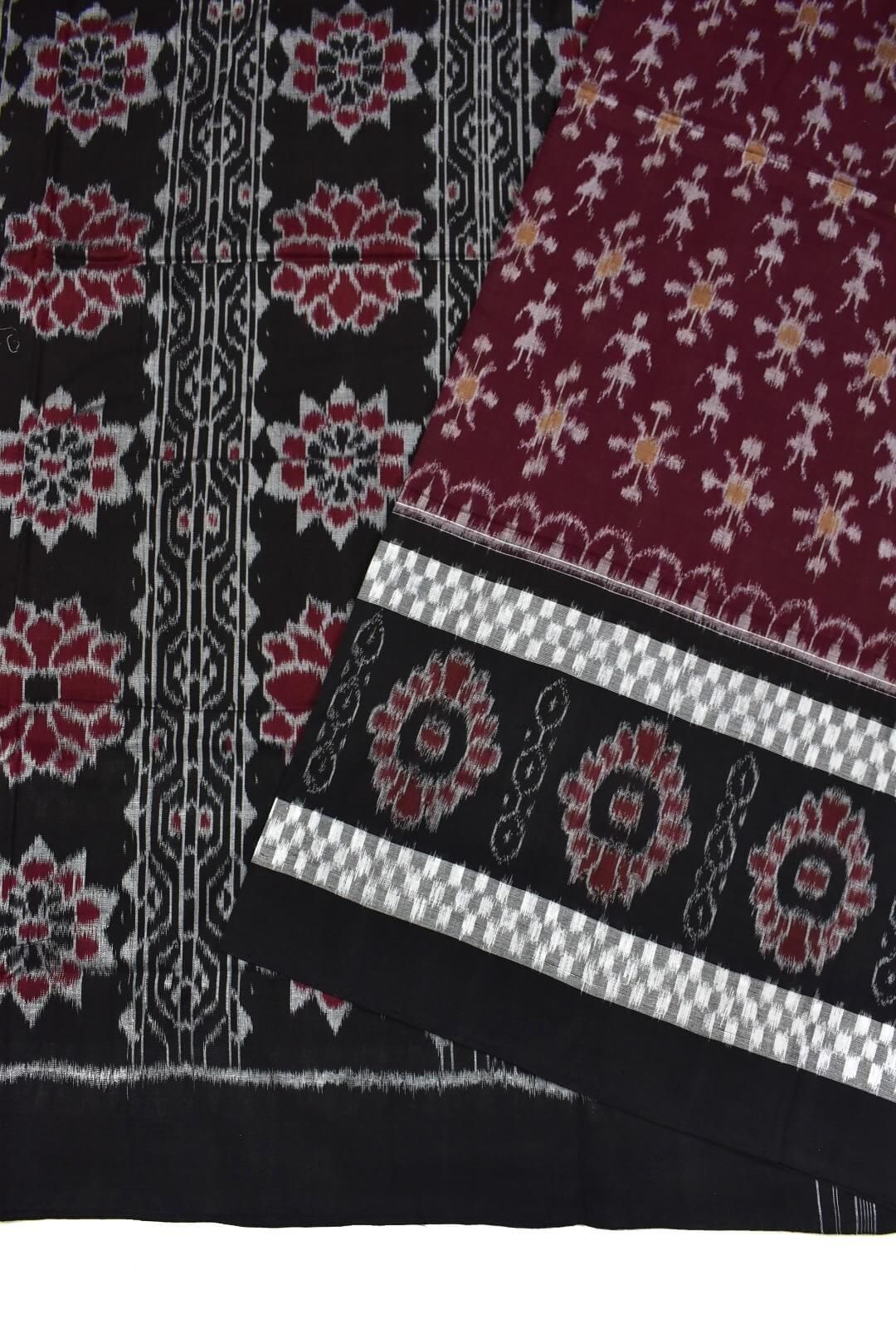 Maroon Plane Border Colour Sambalpuri Handloom Cotton Saree