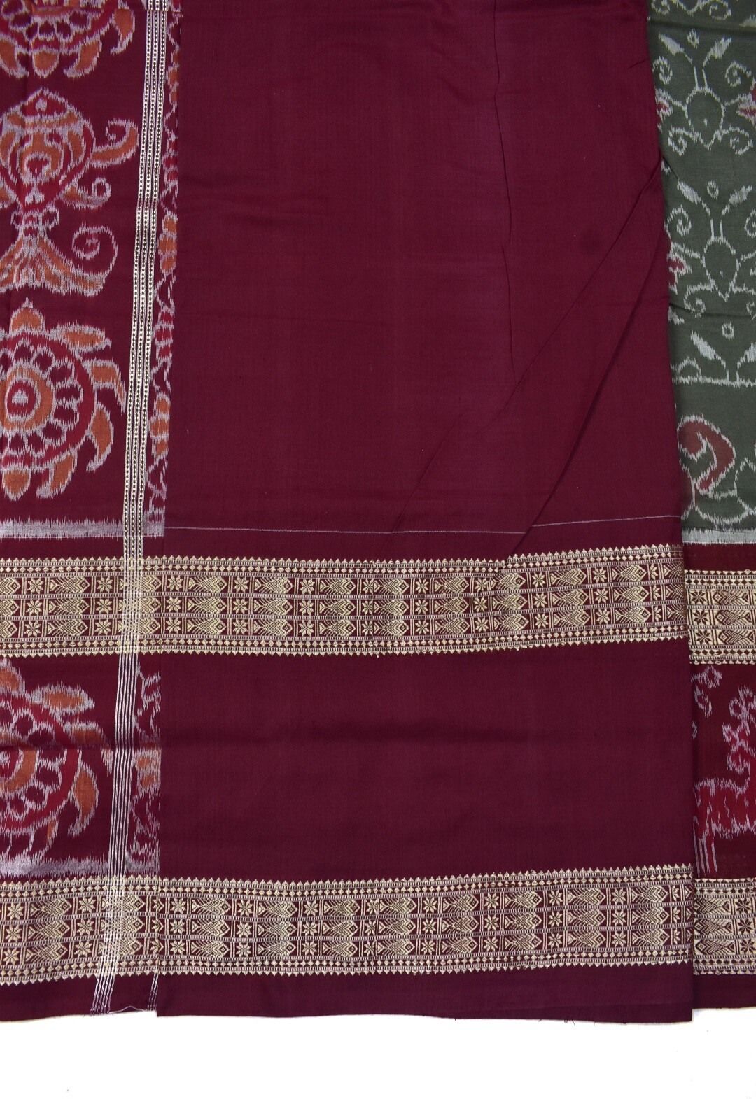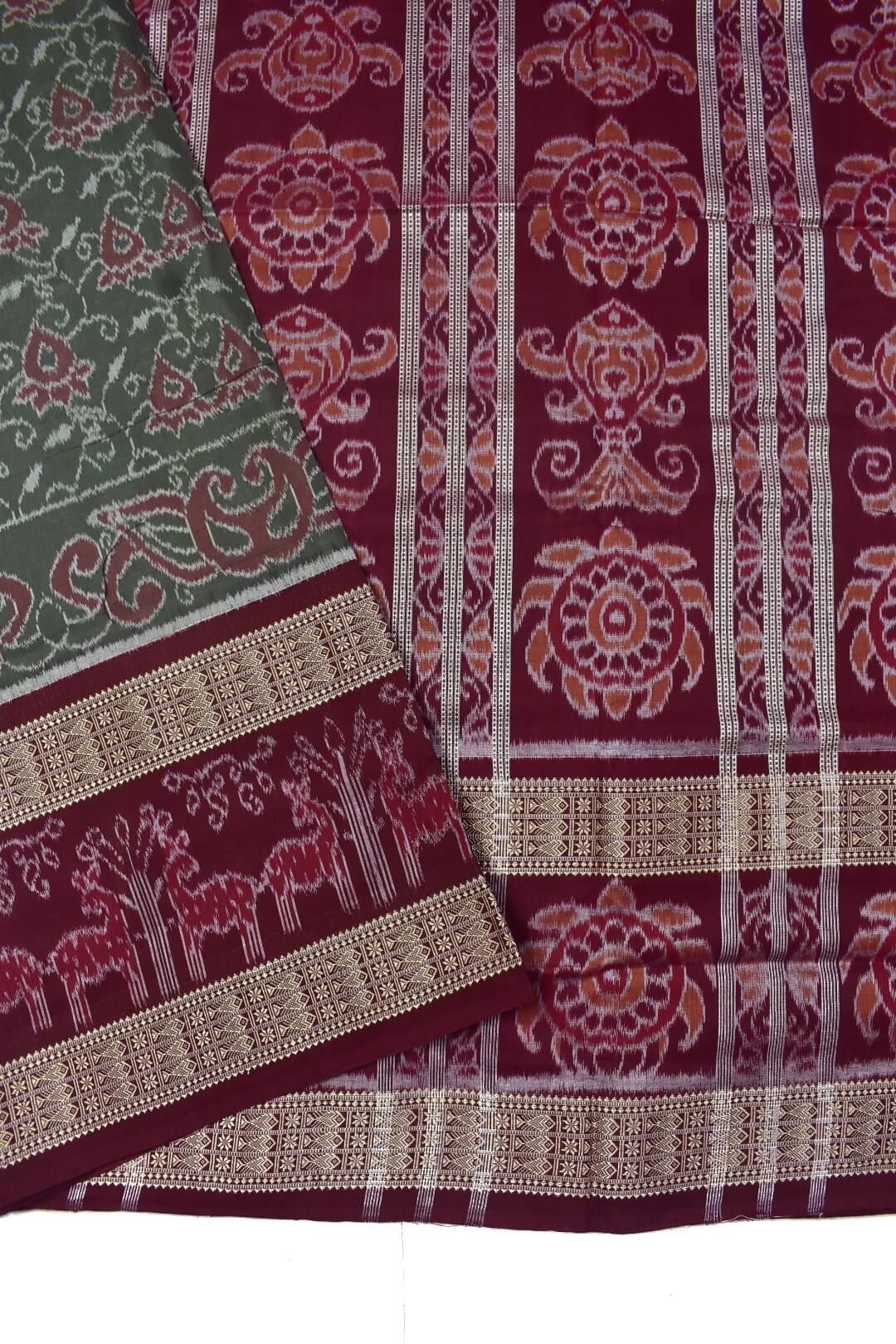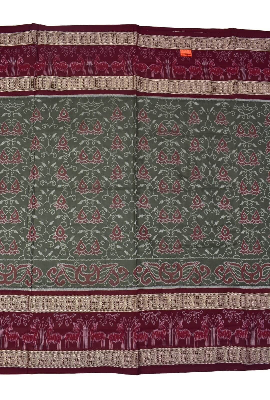 Cement Colour Double Border Sambalpuri Handloom Bandha Cotton Saree