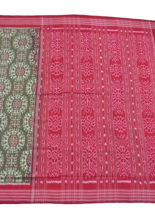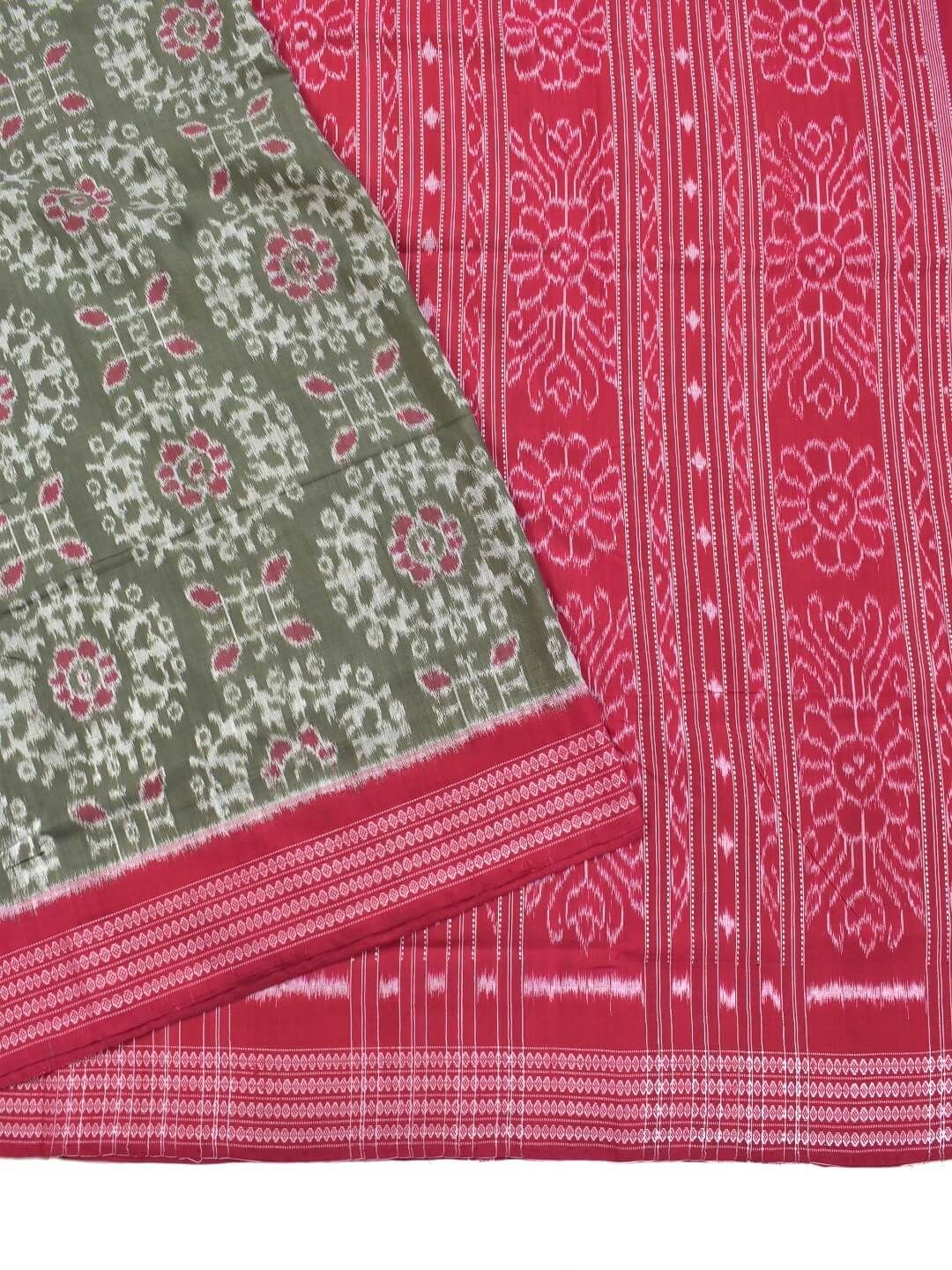 Cement Colour Tribal Design Sambalpuri Handloom Cotton Bandha Saree