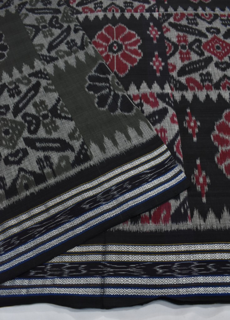 Charcoal Colour Sambalpuri Handloom Cotton Saree