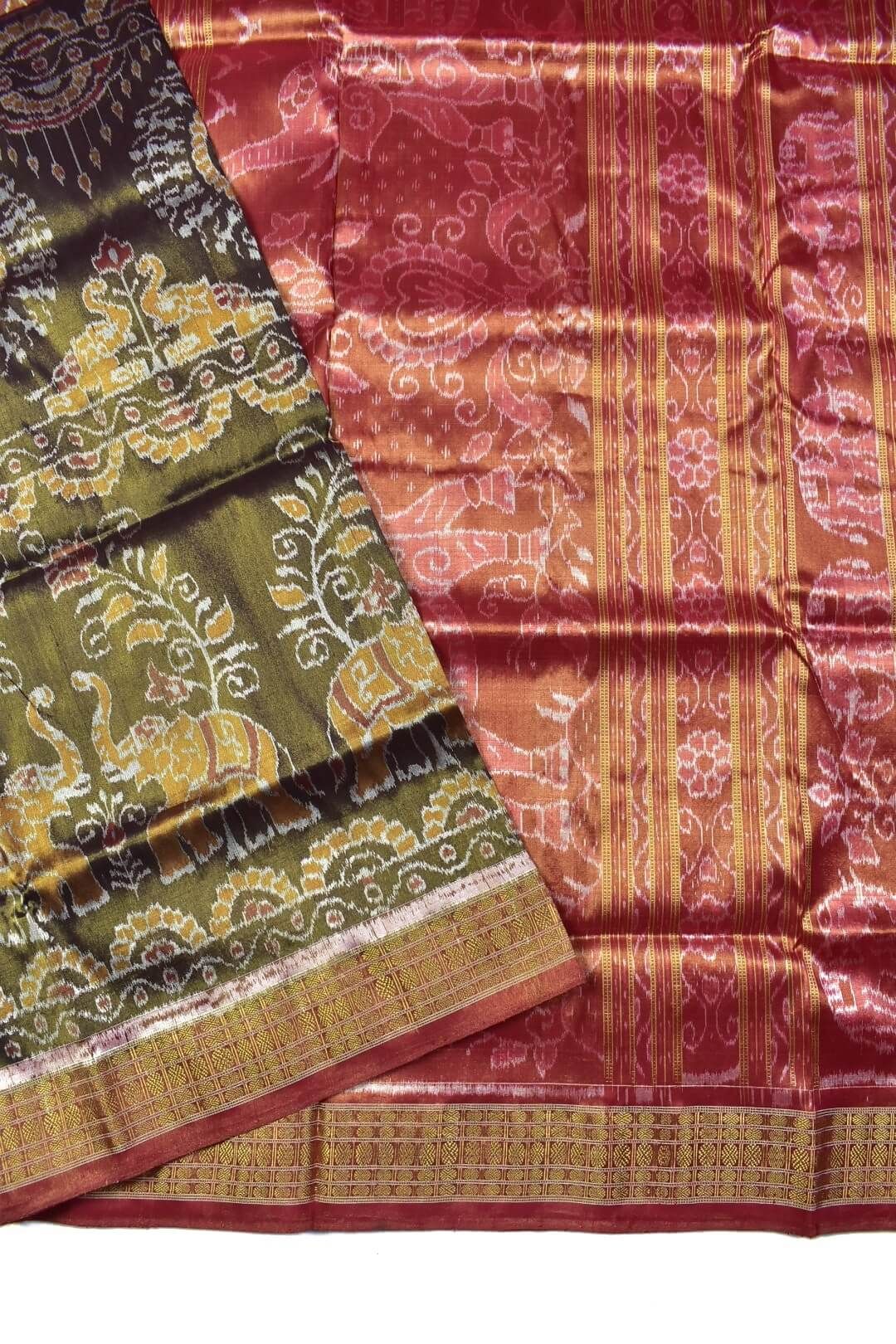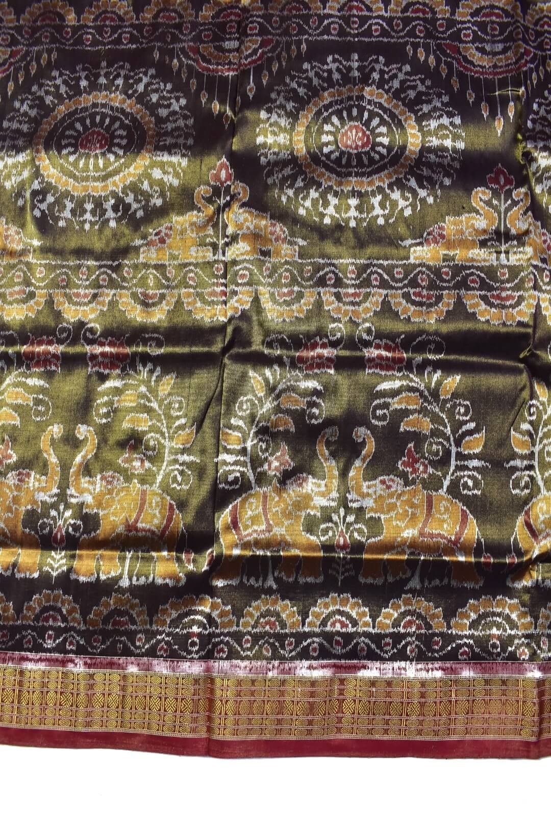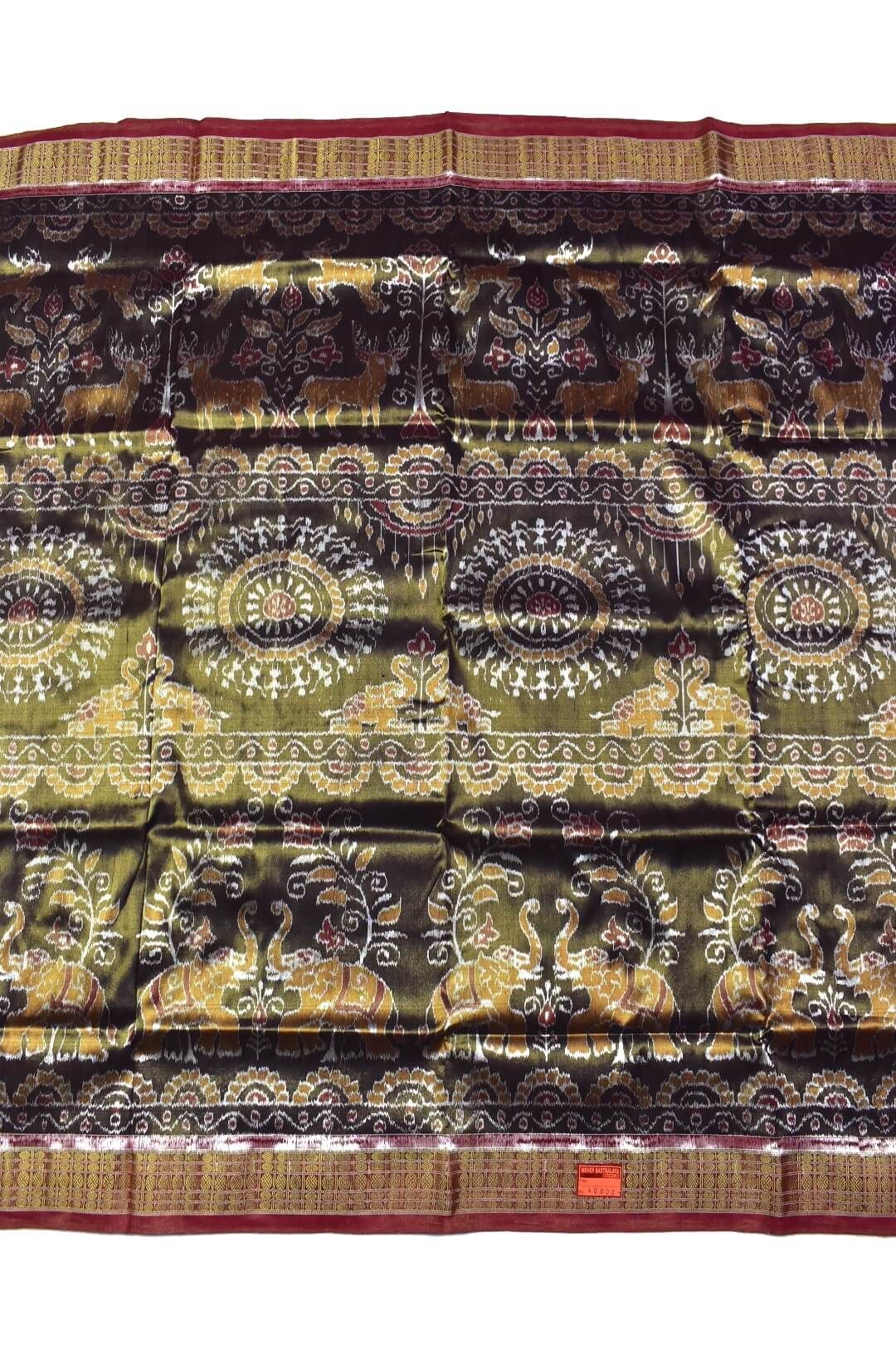 Coffe Colour Animal Design Sambalpuri Handloom Full Tisse Bandha Silk Saree
