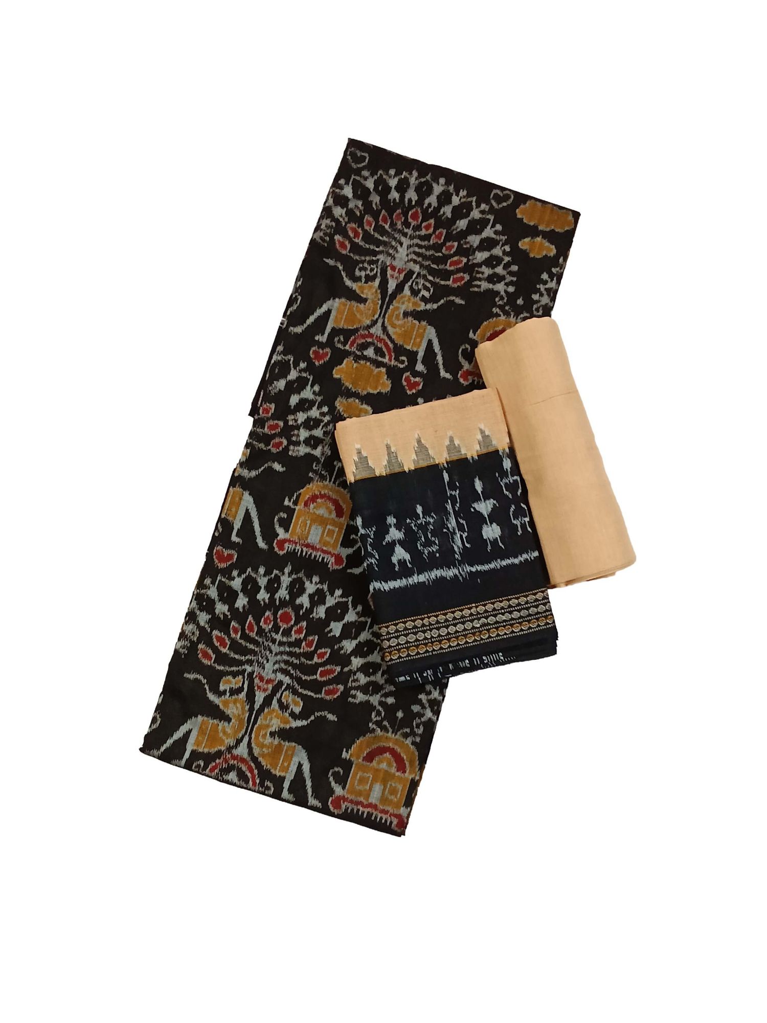 Be the first to review “Coffe Colour Tribal Design Sambalpuri Handloom Cotton Dress Materials”