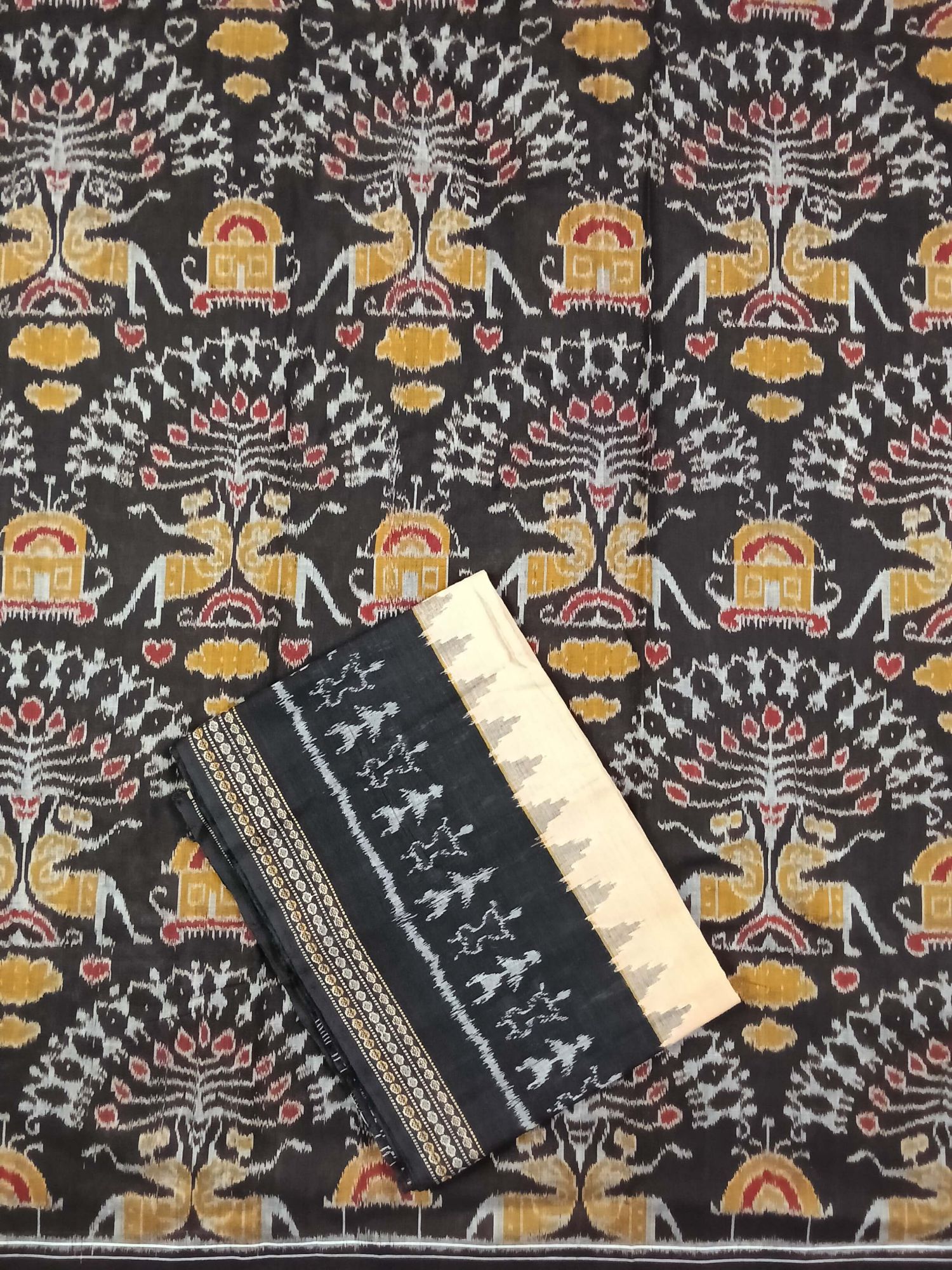 Coffe Colour Tribal Design Sambalpuri Handloom Cotton Dress Materials