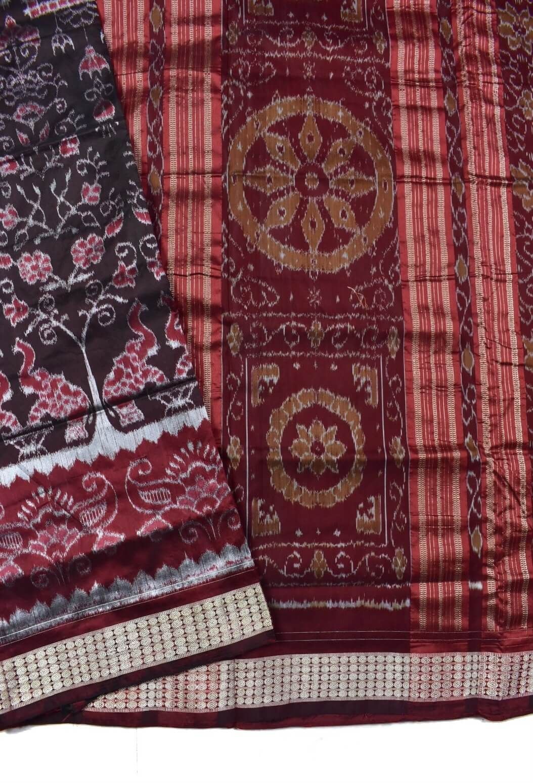 Coffe-Maroon Combination Sambalpuri Handloom Mix Silk Saree