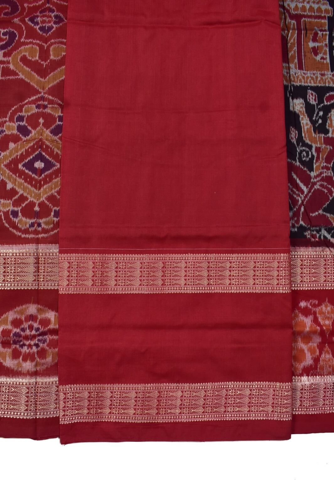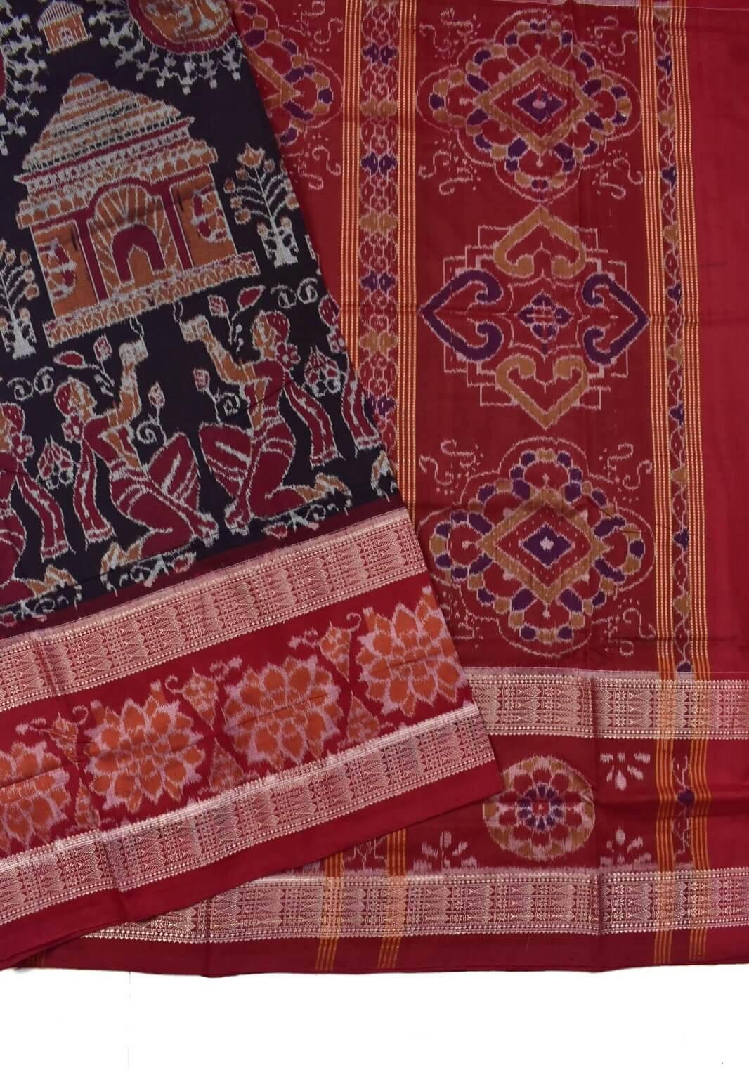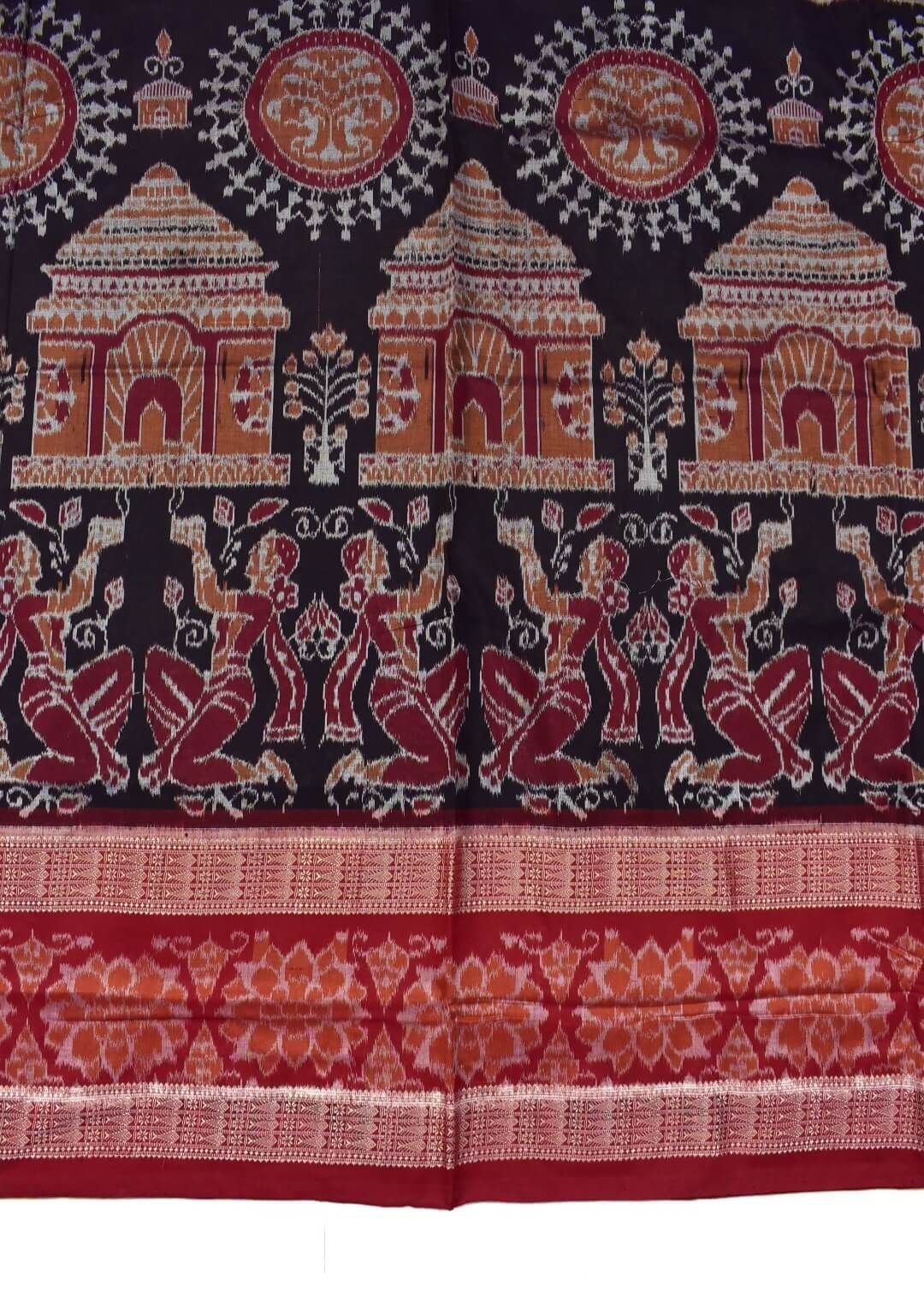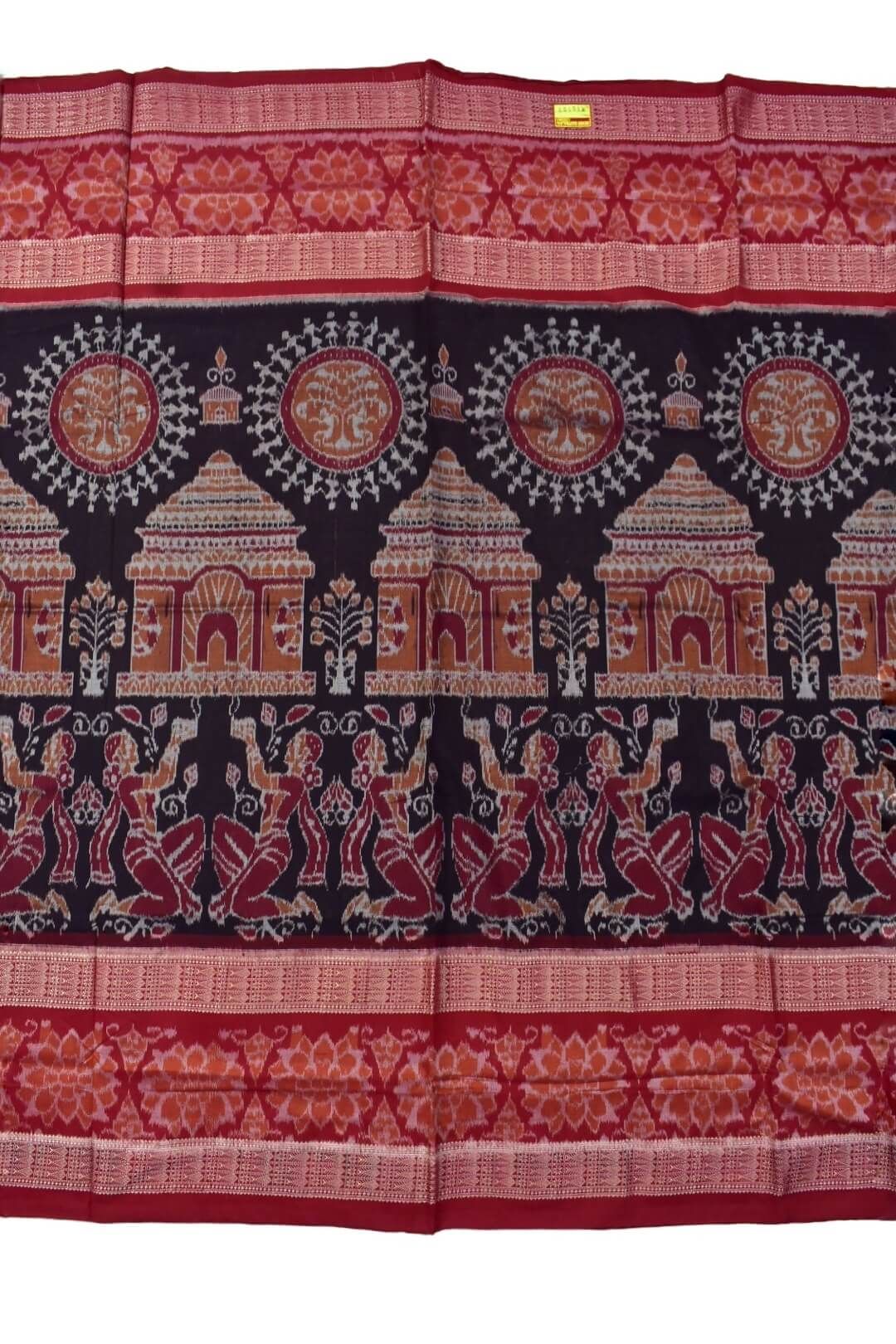 Coffe-Red Combination Double Border Sambalpuri Handloom Bandha Cotton Saree