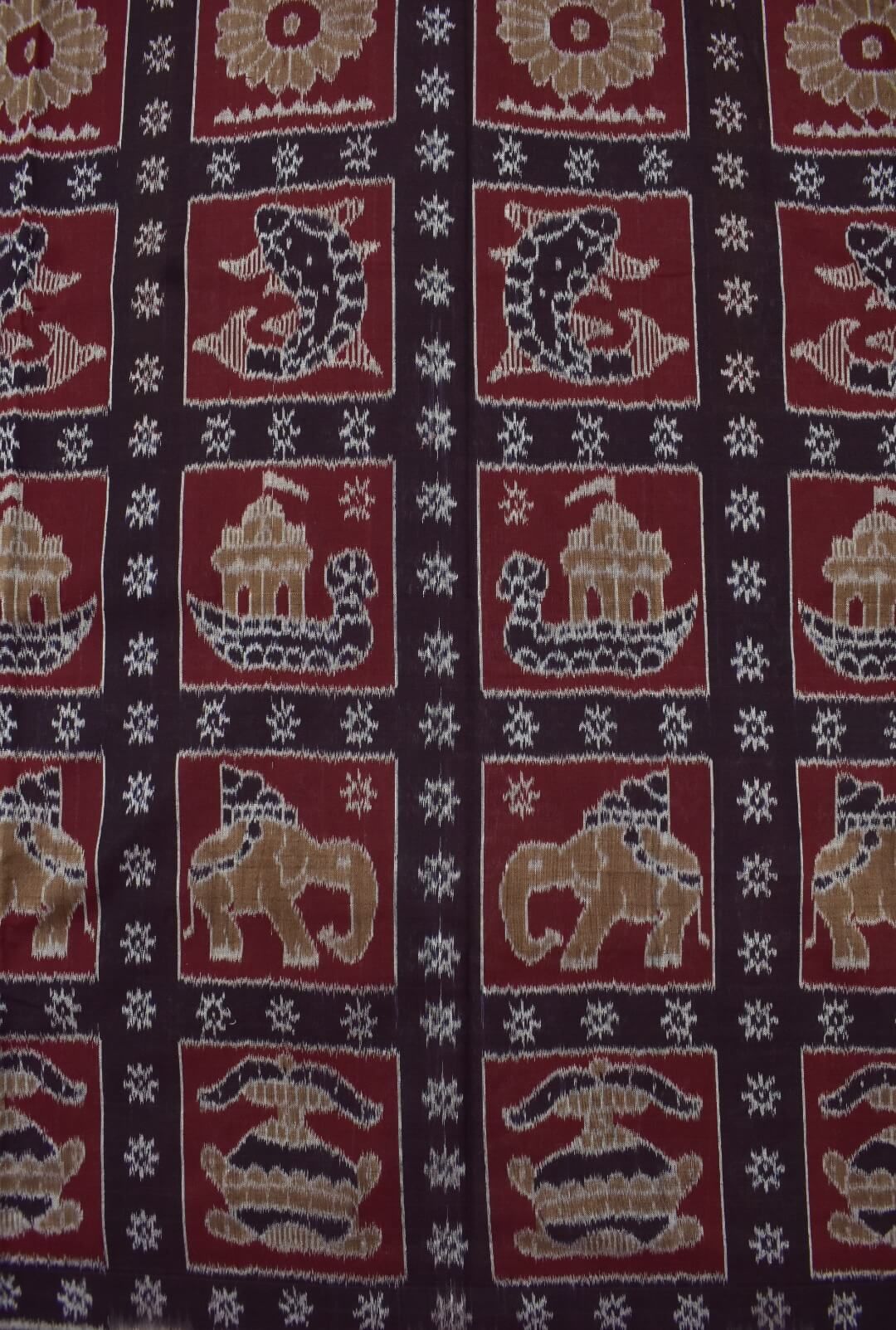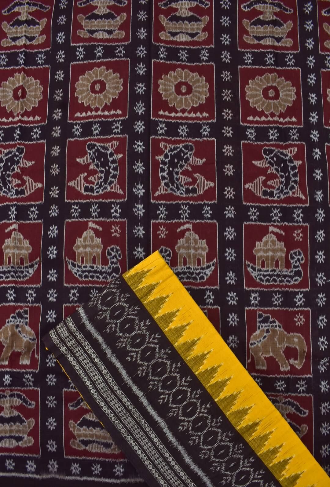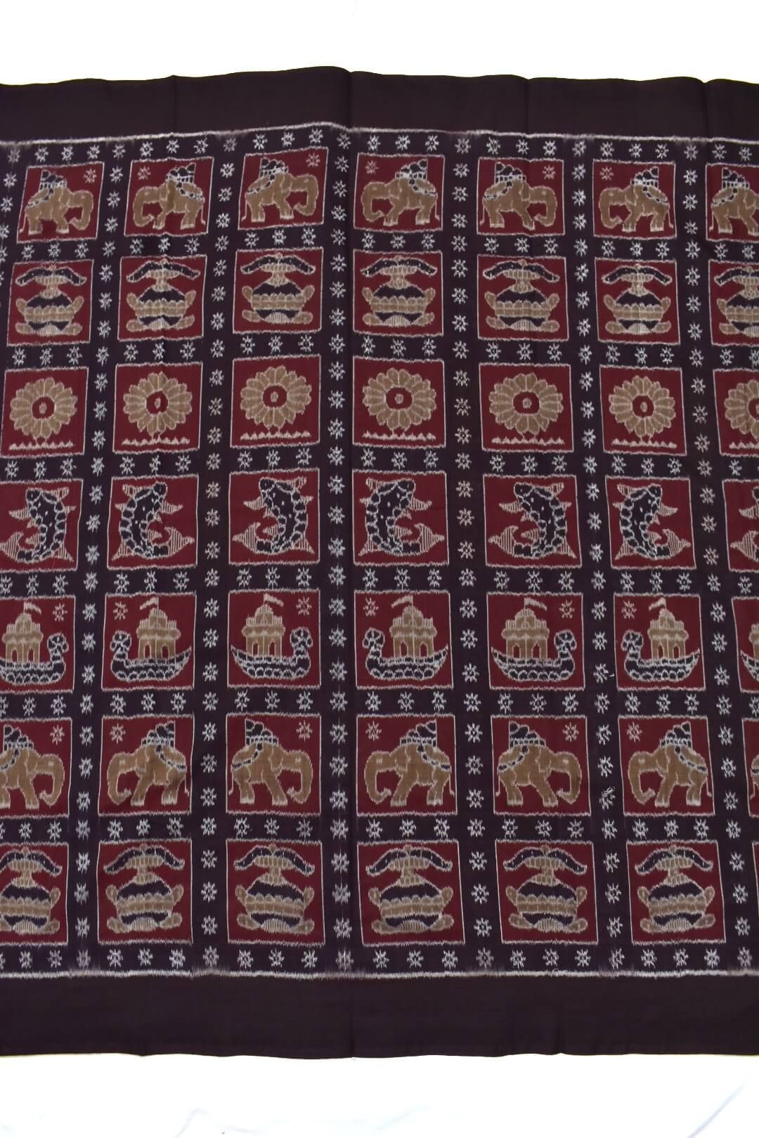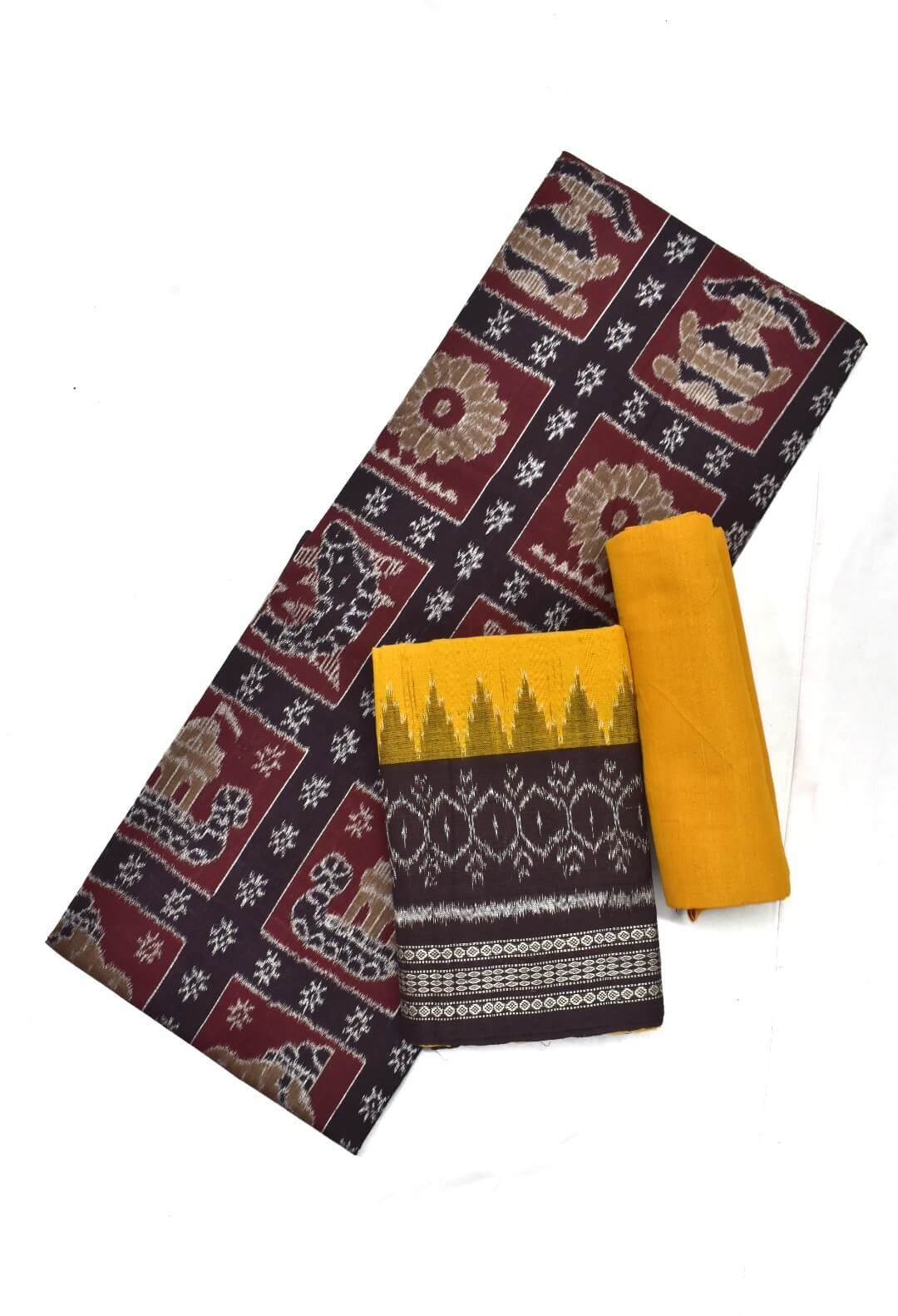 Coffee Colour Elephant Design Sambalpuri Handloom Cotton Dress Material