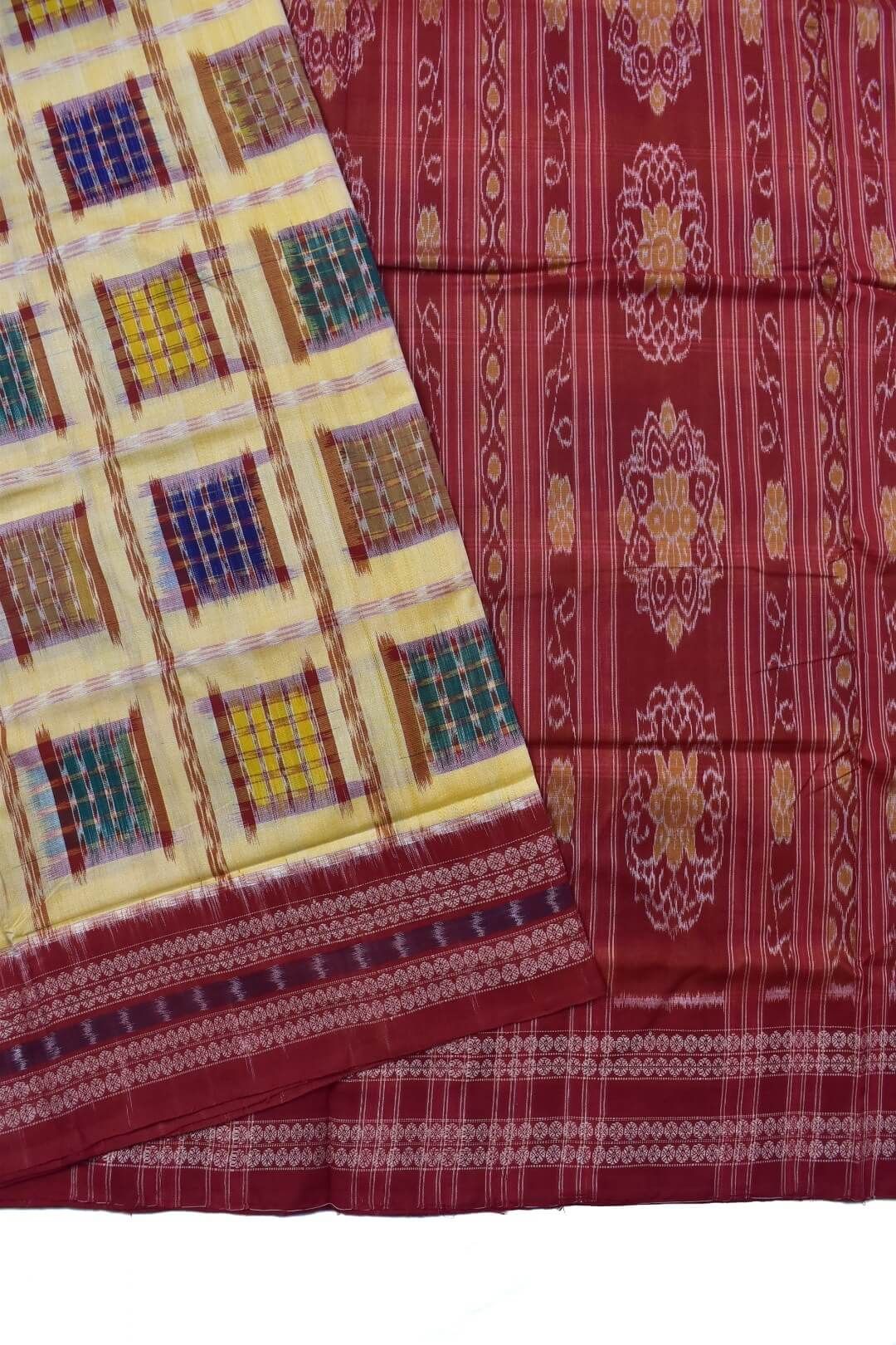 Cream Colour Aswini Design Sambalpuri Handloom Cotton Saree