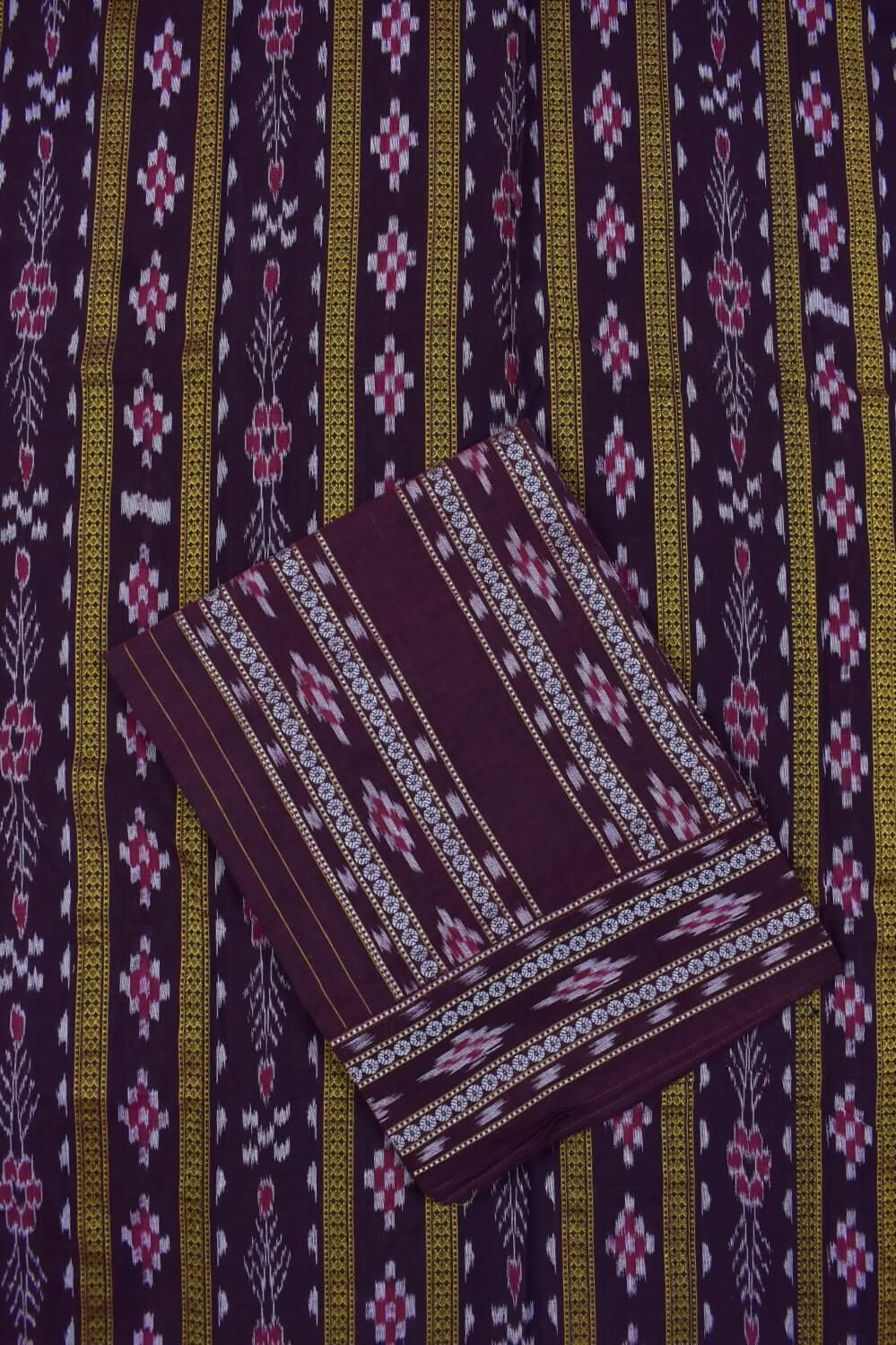 Deep Maroon Colour Pasapali Design Sambalpuri Handloom Cotton Dress Material