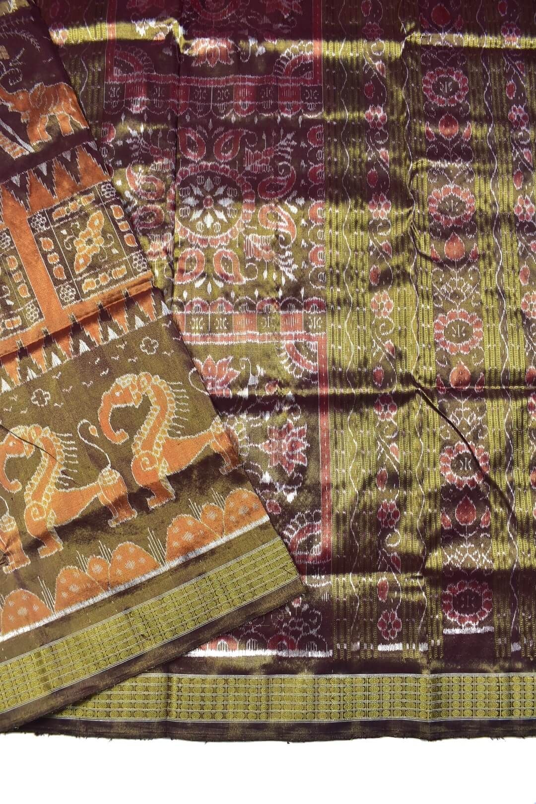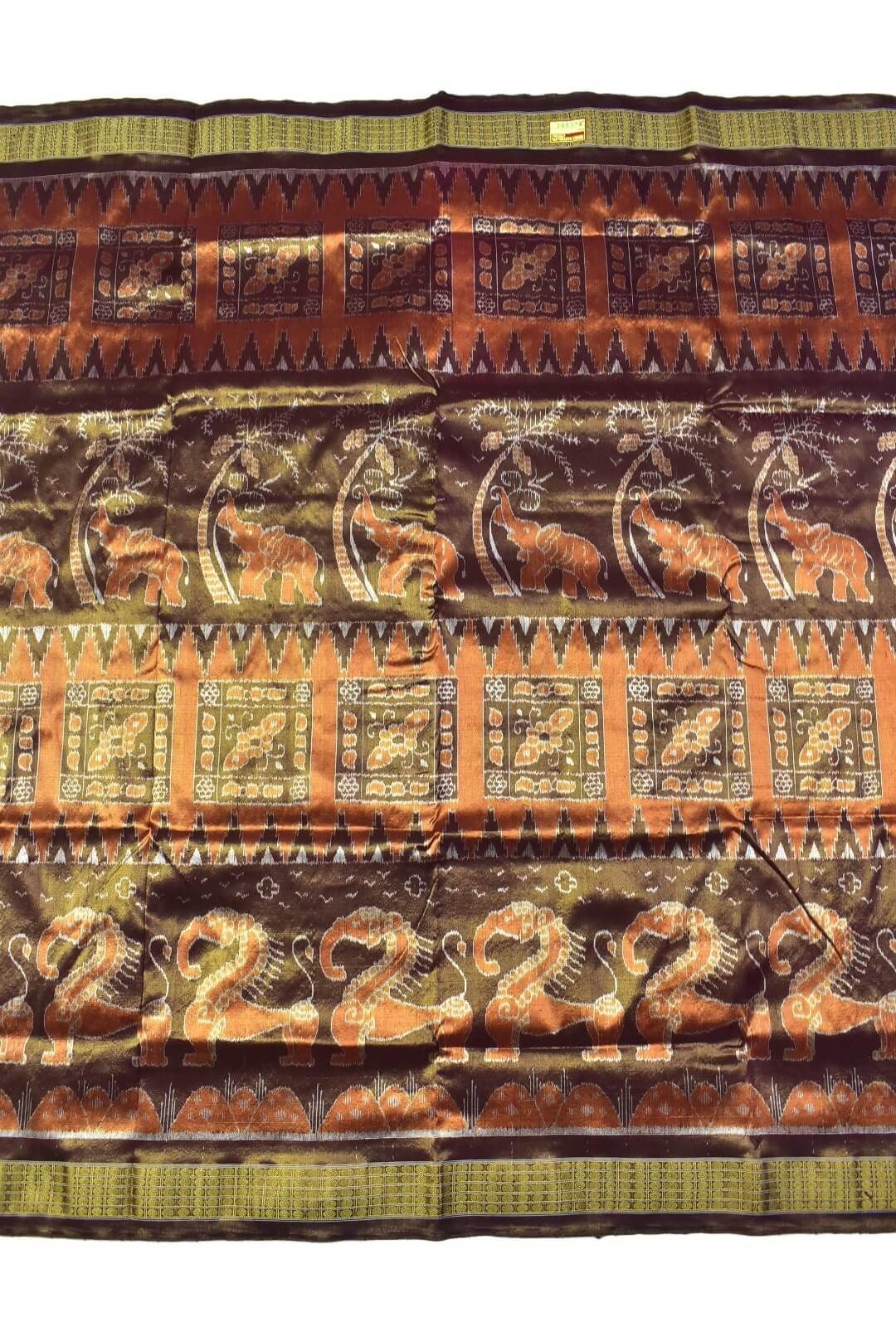 Golden Colour Elephant Design Sambalpuri Handloom Pure Full Tisse Silk Saree