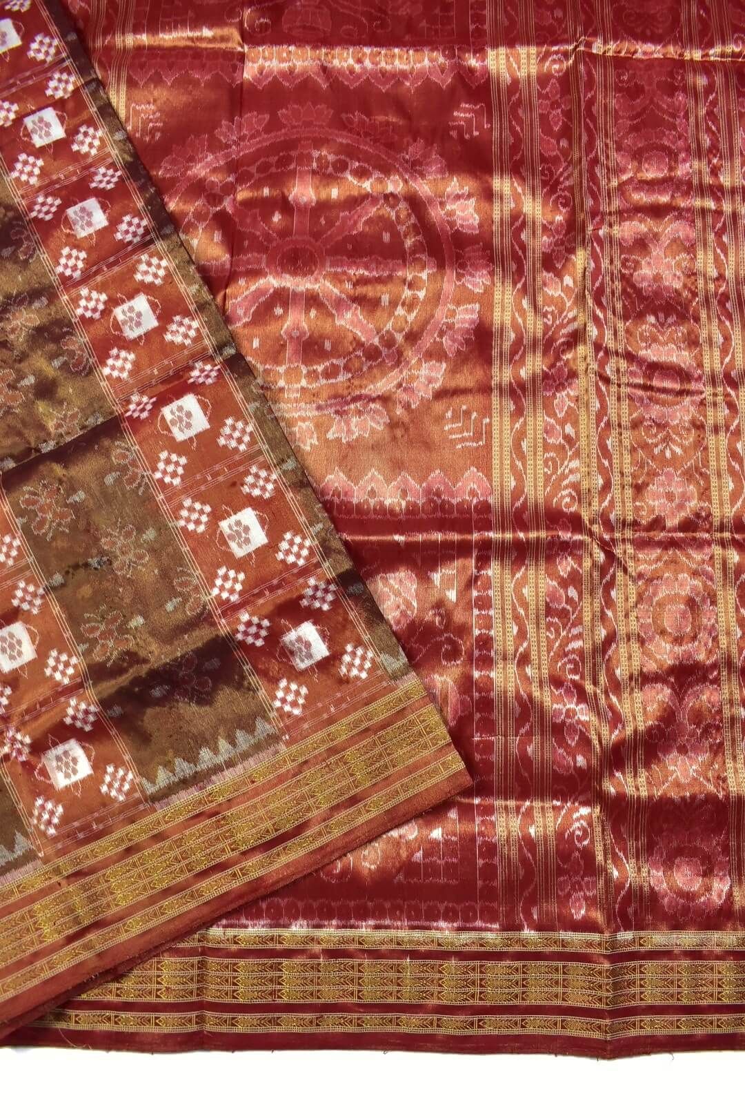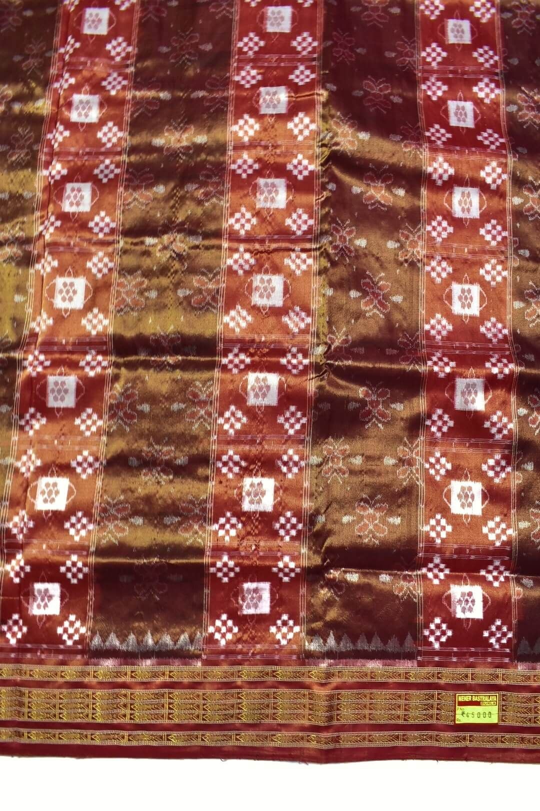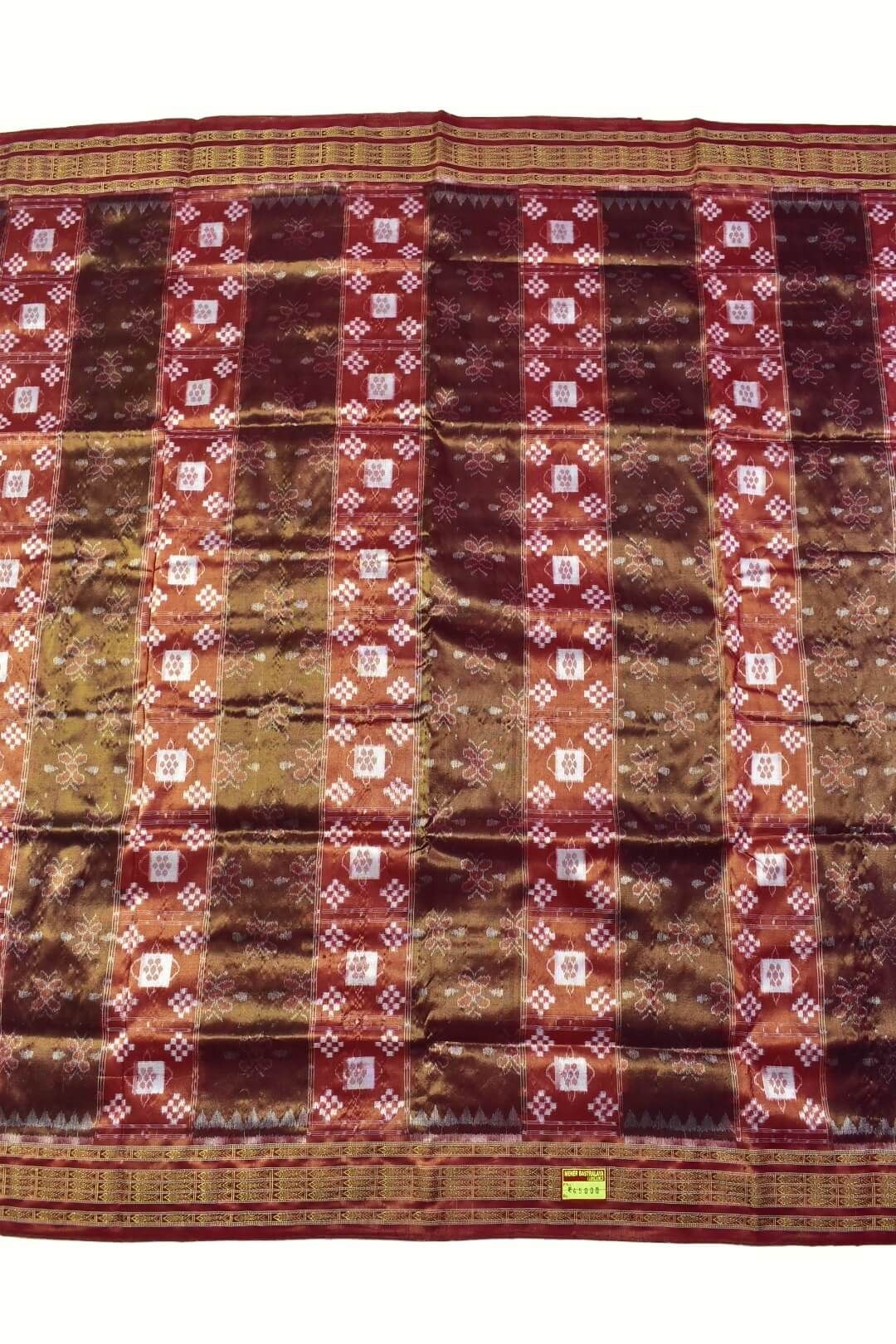 Golden Colour Pasapali Design Sambalpuri Handloom Bandha Silk Saree