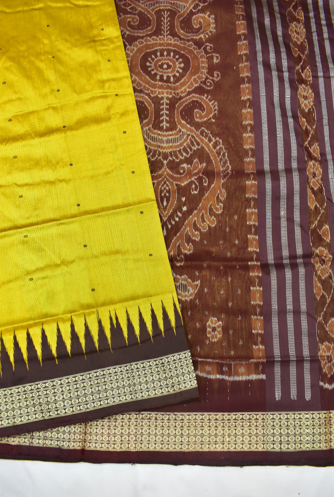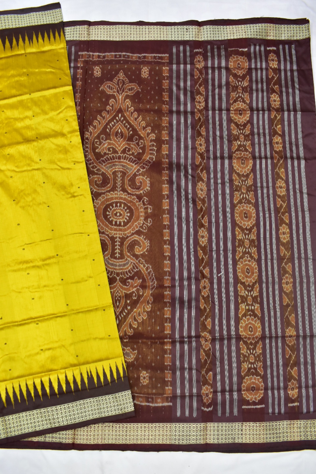 Golden Colour Sambalpuri Handloom Bandha Silk Saree