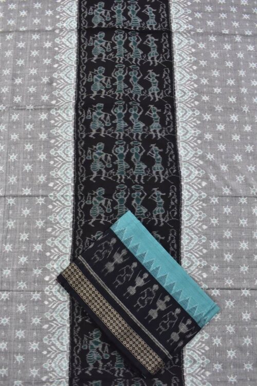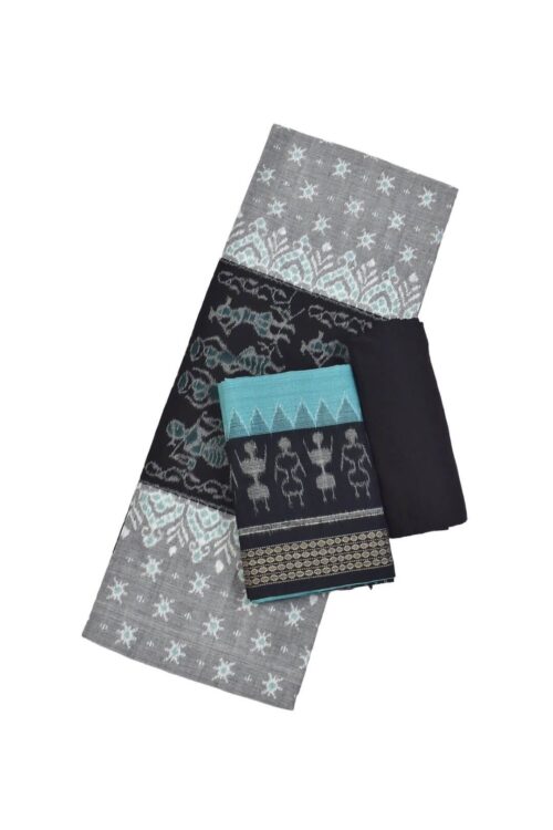Gray-Black Combination Sambalpuri Handloom Cotton Dress Material