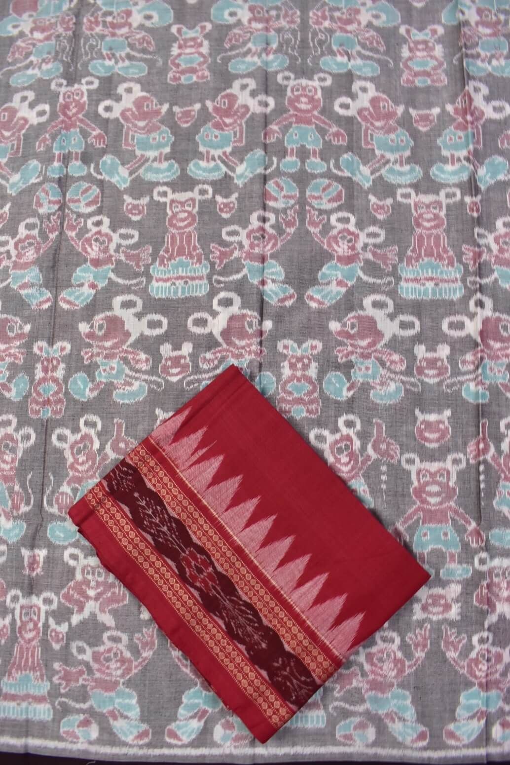 Gray Colour Mickey Mouse Sambalpuri Handloom Cotton Dress Material