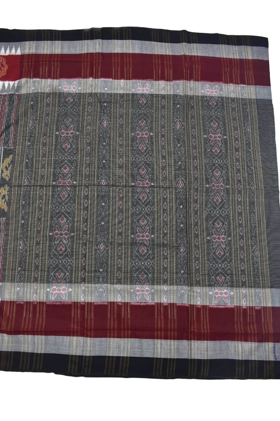 Gray Colour Plane Boder Sambalpuri Handloom Cotton Saree