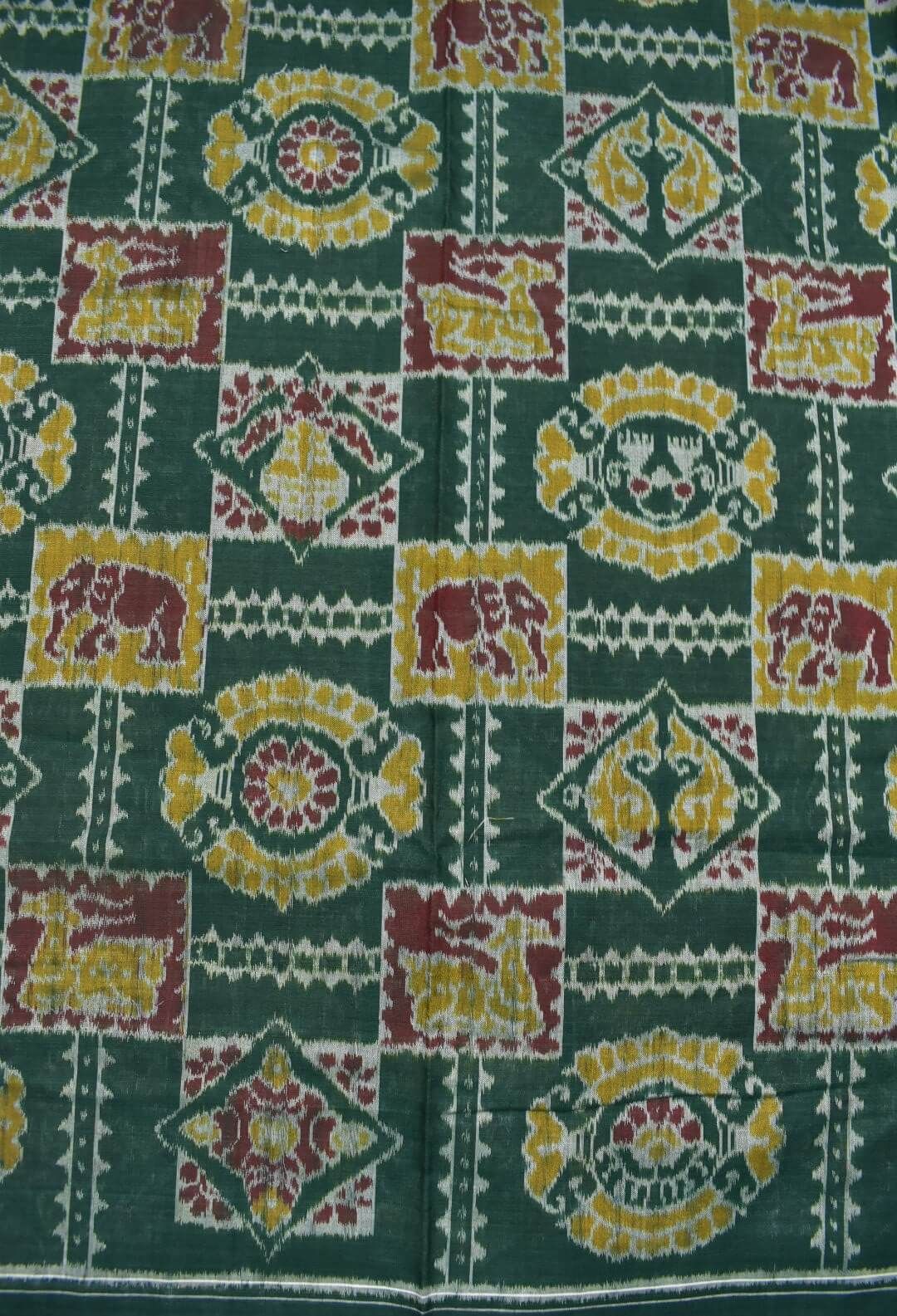 Green Colour Animal Design Sambalpuri Handloom Cotton Dress Material