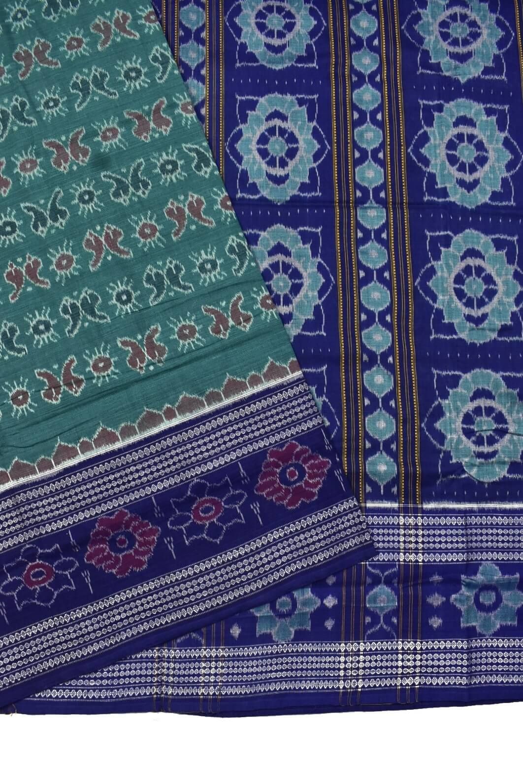 Green Colour Double Border Sambalpuri Handloom Bandha Cotton Saree