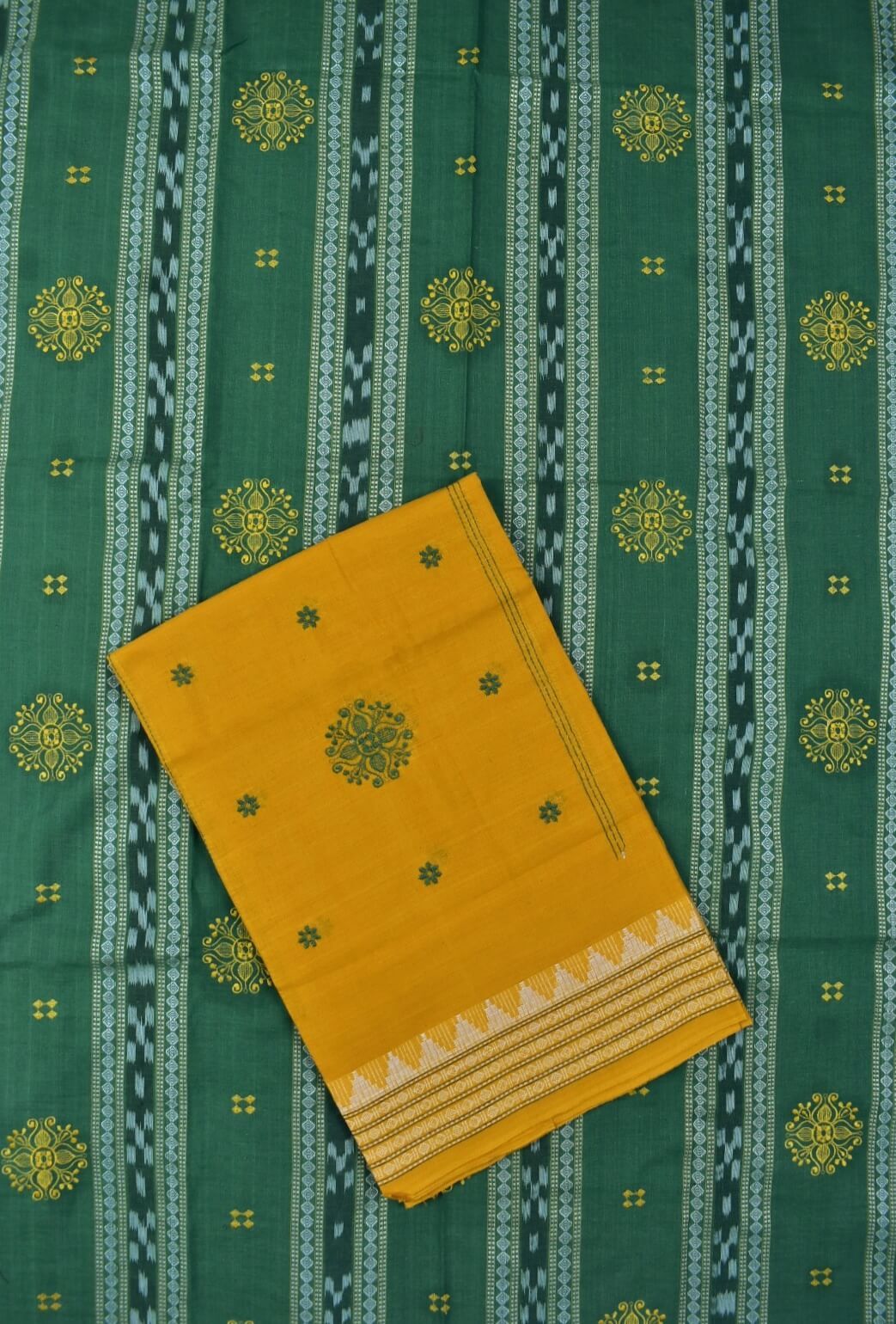 Green Colour Sambalpuri Handloom Cotton Bomkai Dress Material