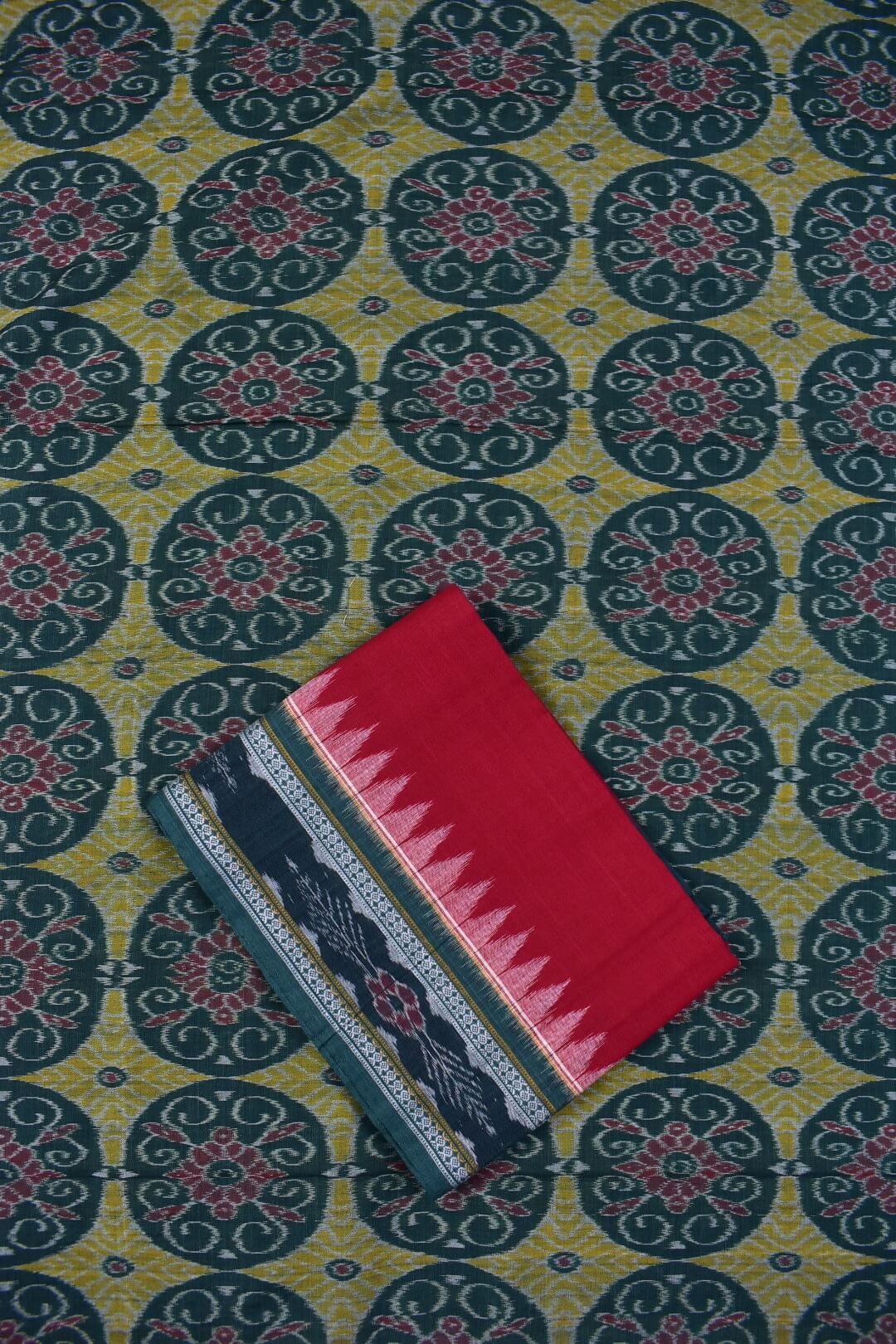 Green Colour Sambalpuri Handloom Cotton Dress Material