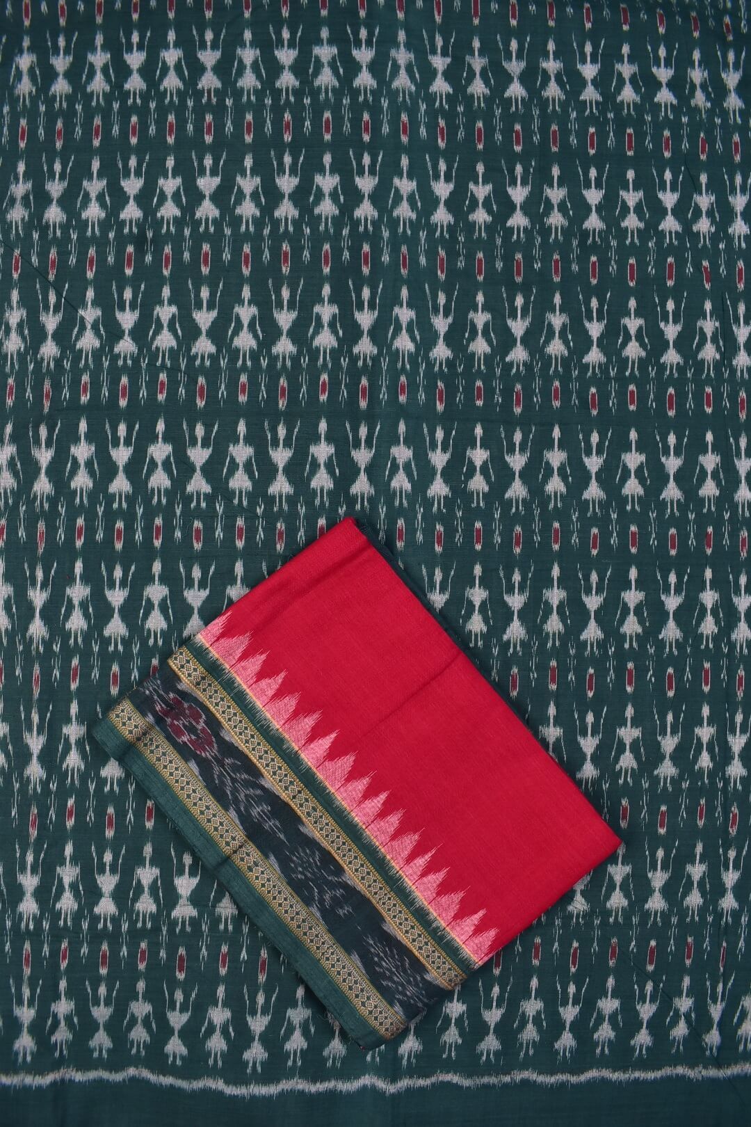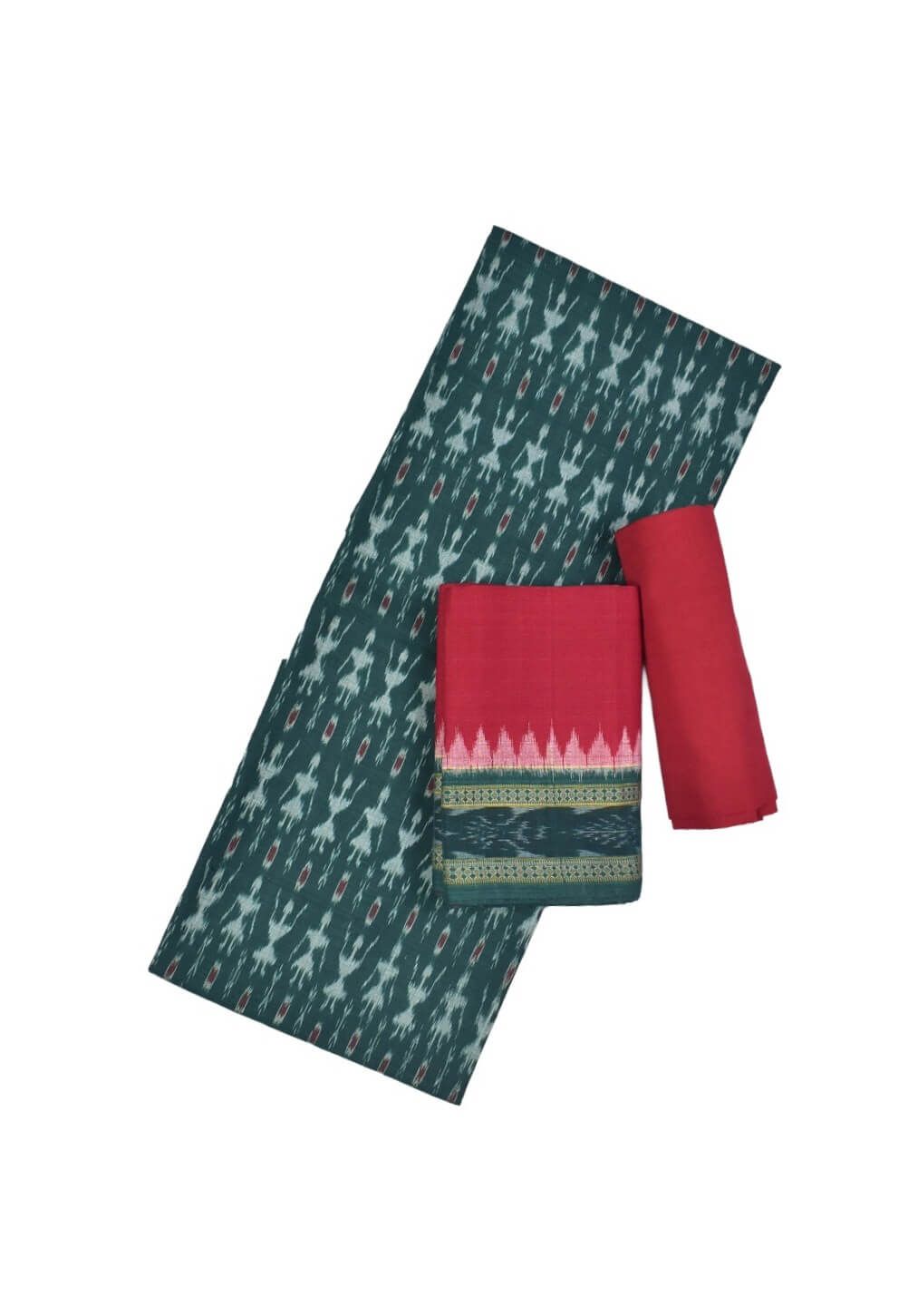Green Colour Tribal Design Sambalpuri Handloom Cotton Dress Material
