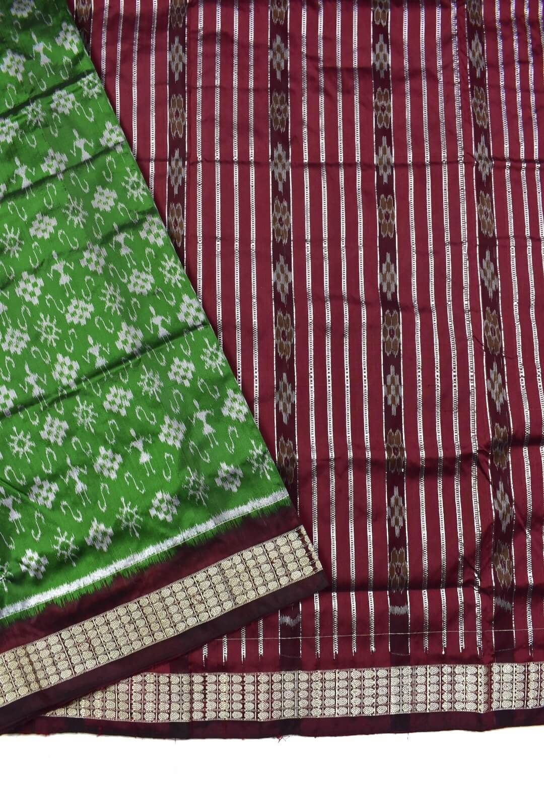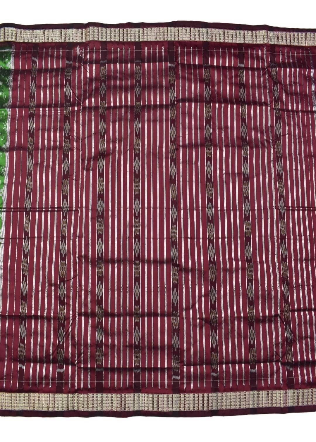 Green-Maroon Combination Patli Design Sambalpuri Handloom Silk Saree