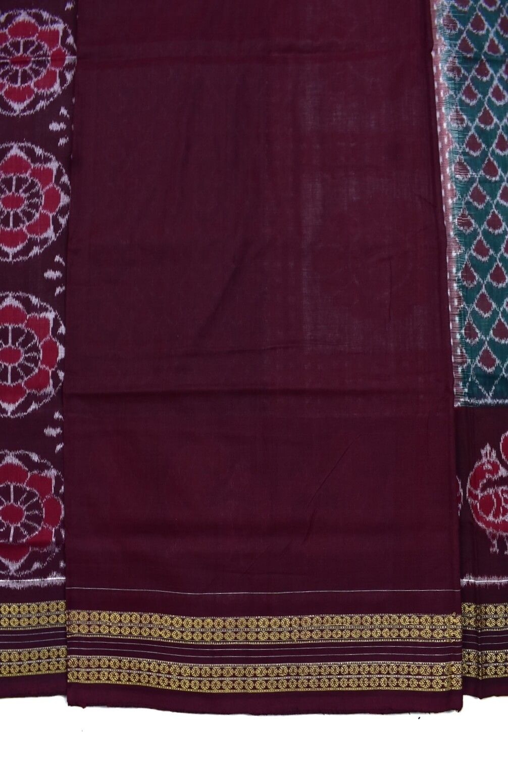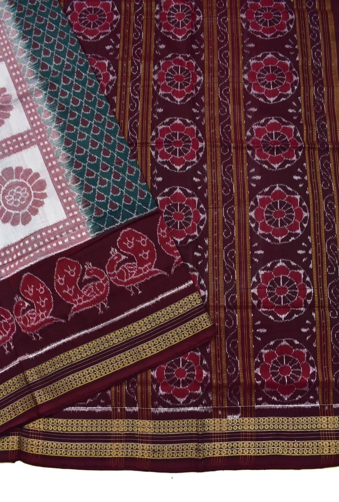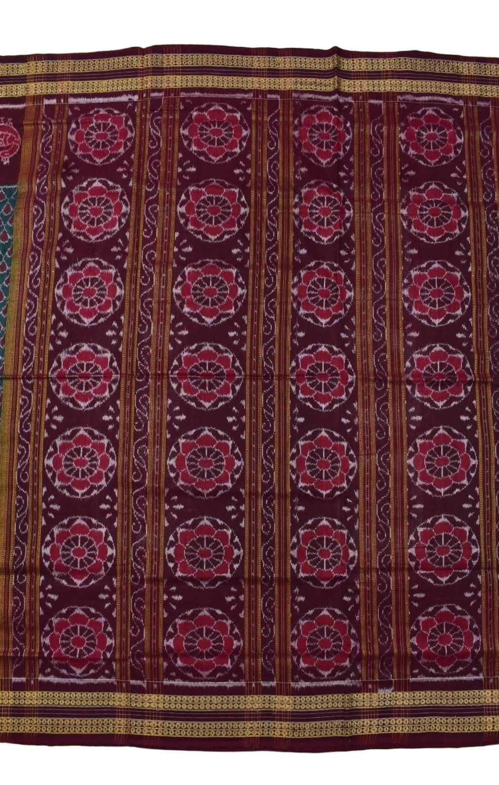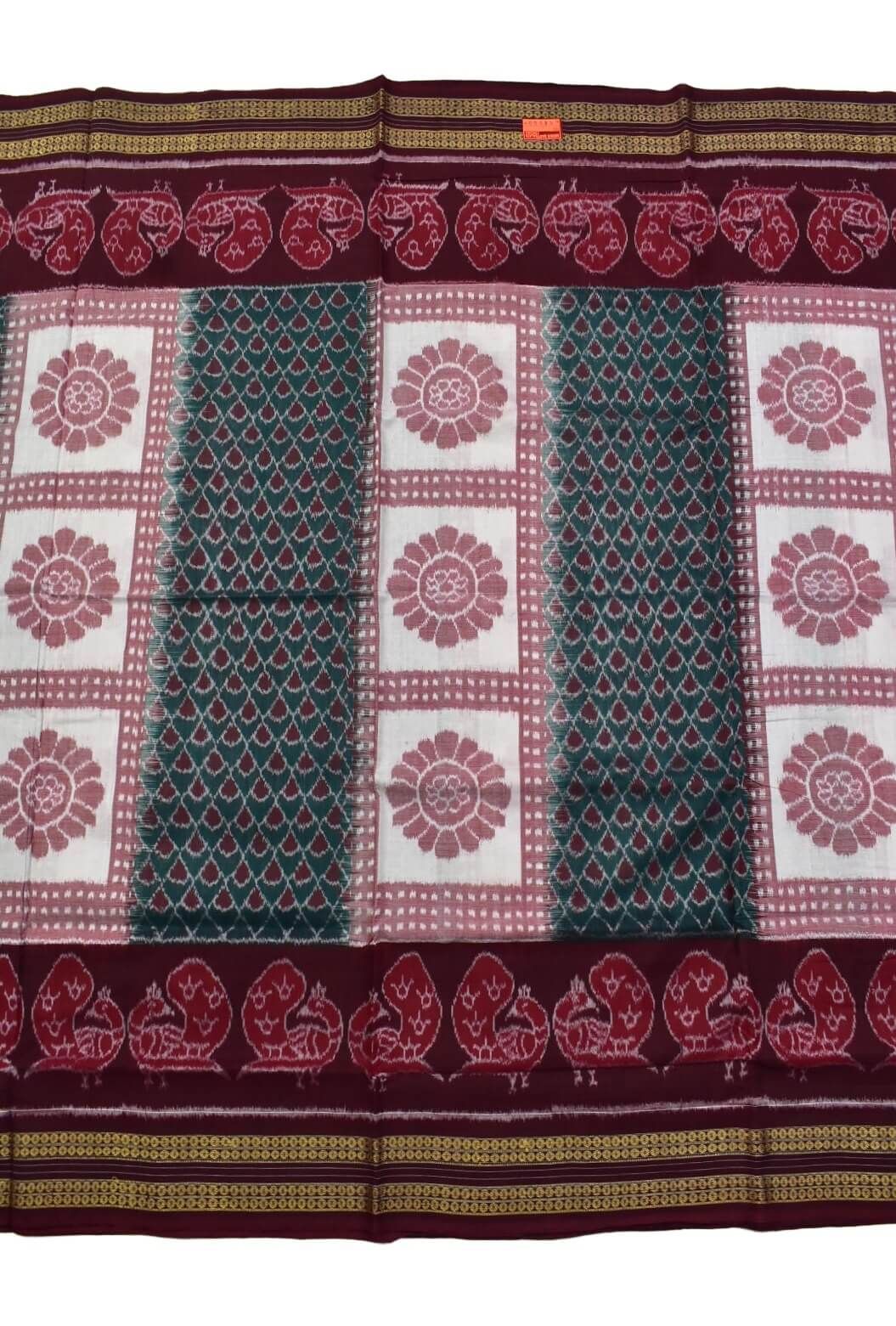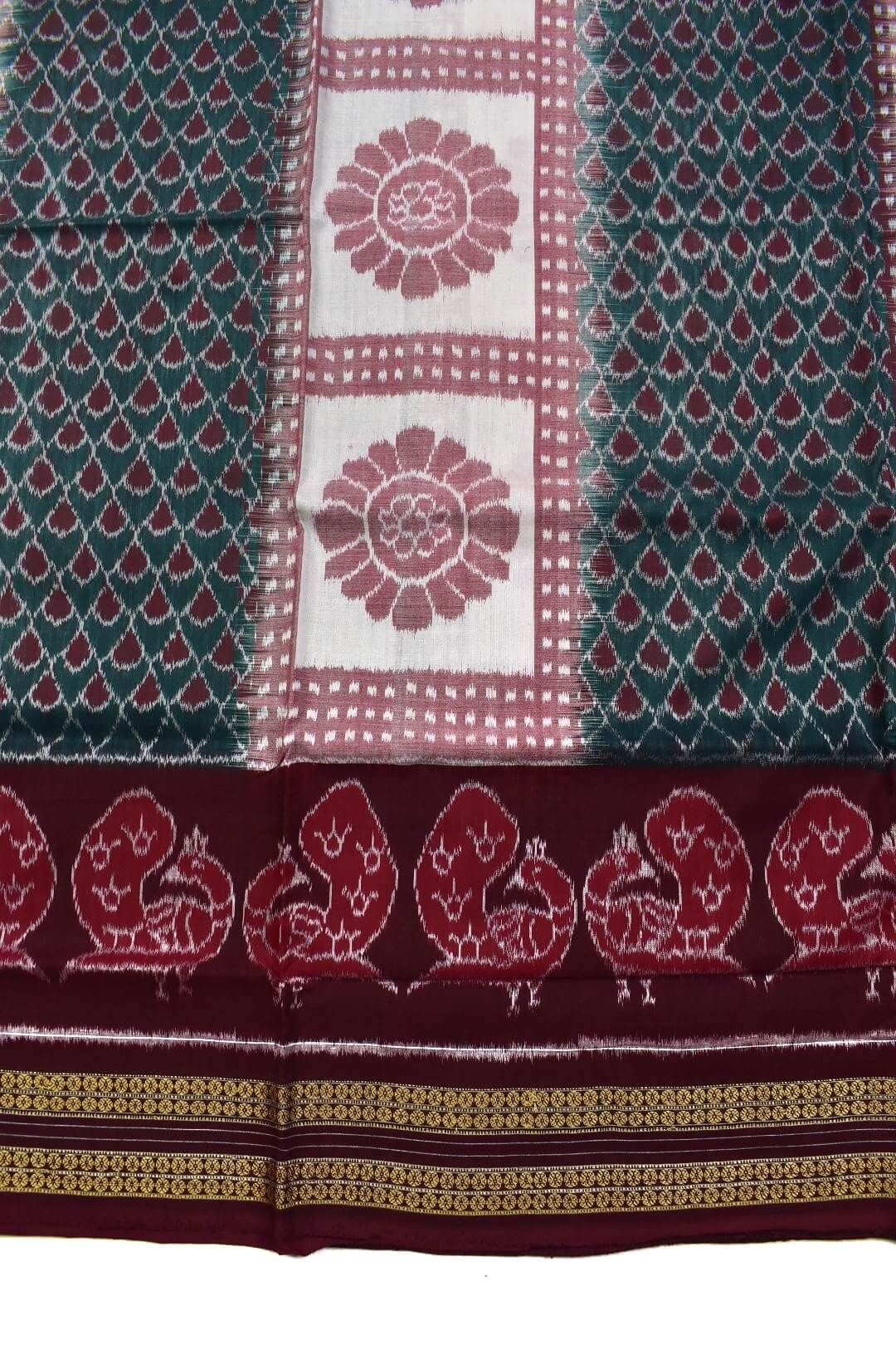 Green-Maroon Combination Sambalpuri Handloom Bandha Cotton Saree
