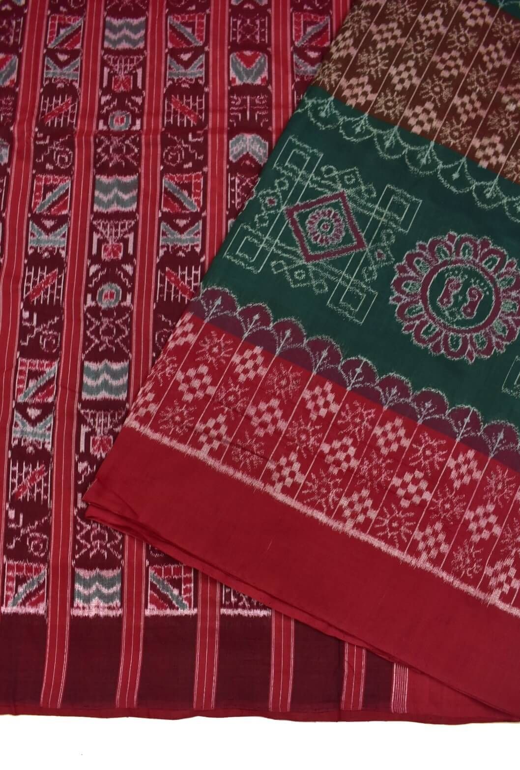 Green Plane Border Colour Sambalpuri Handloom Cotton Saree