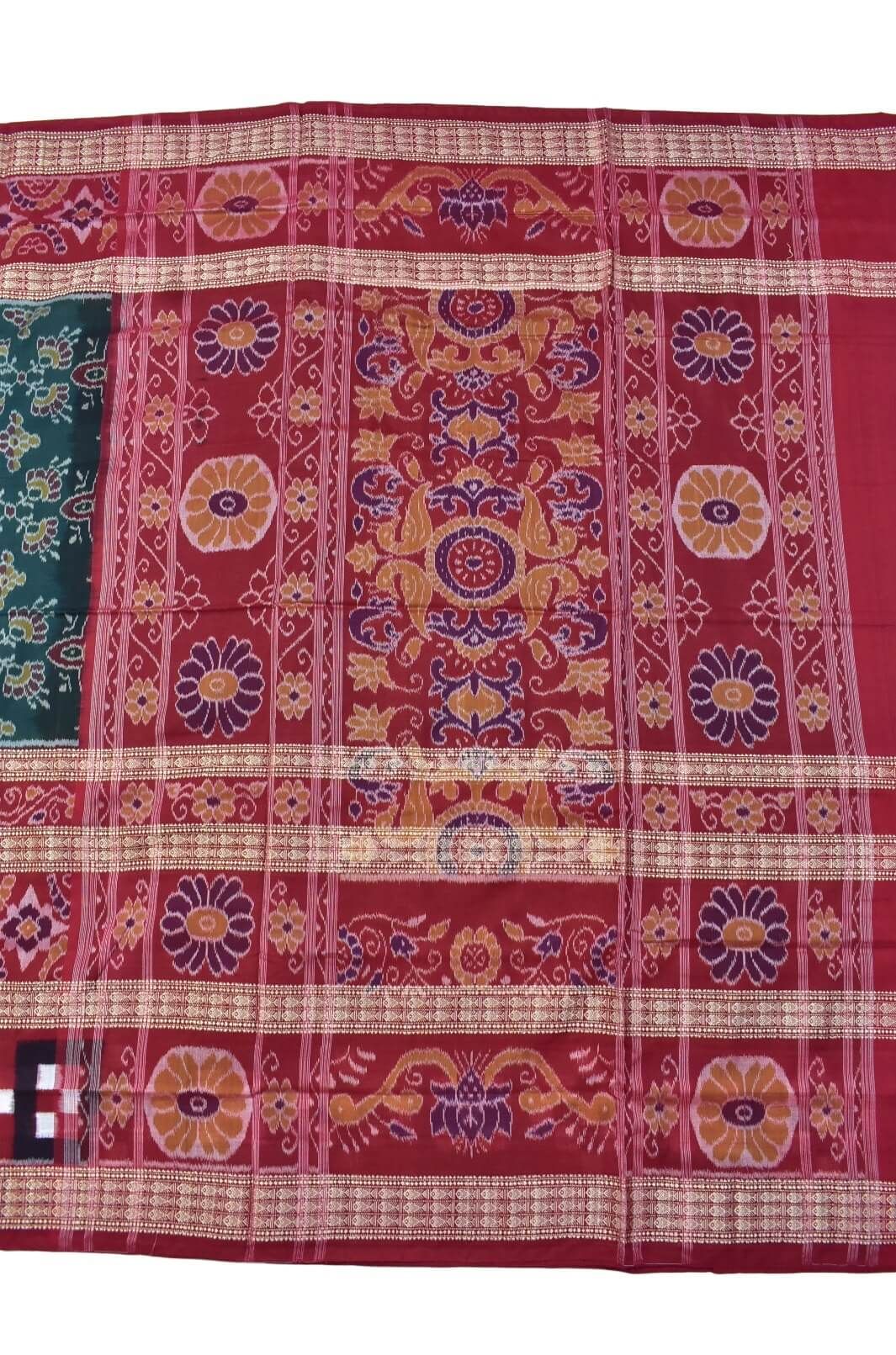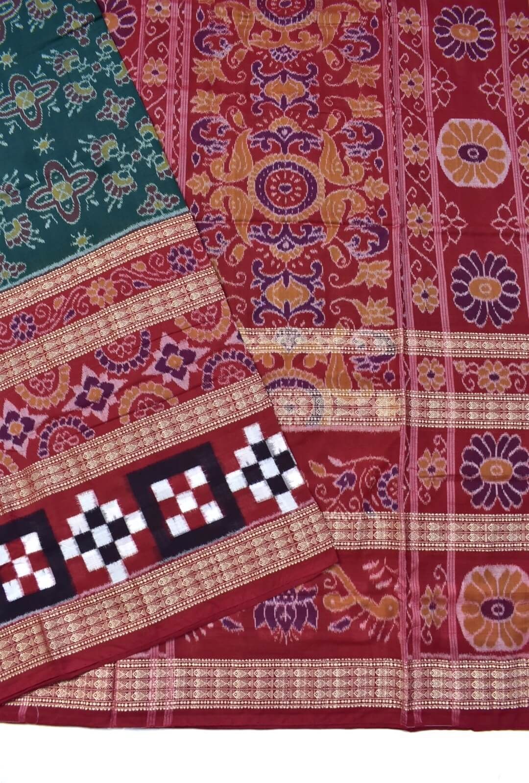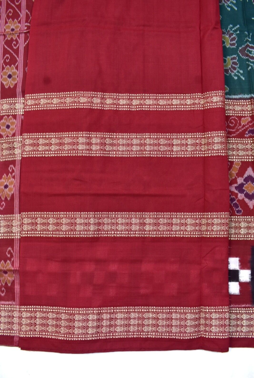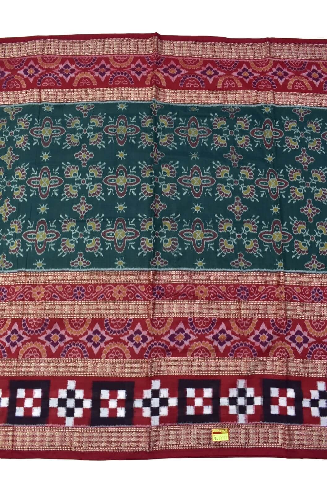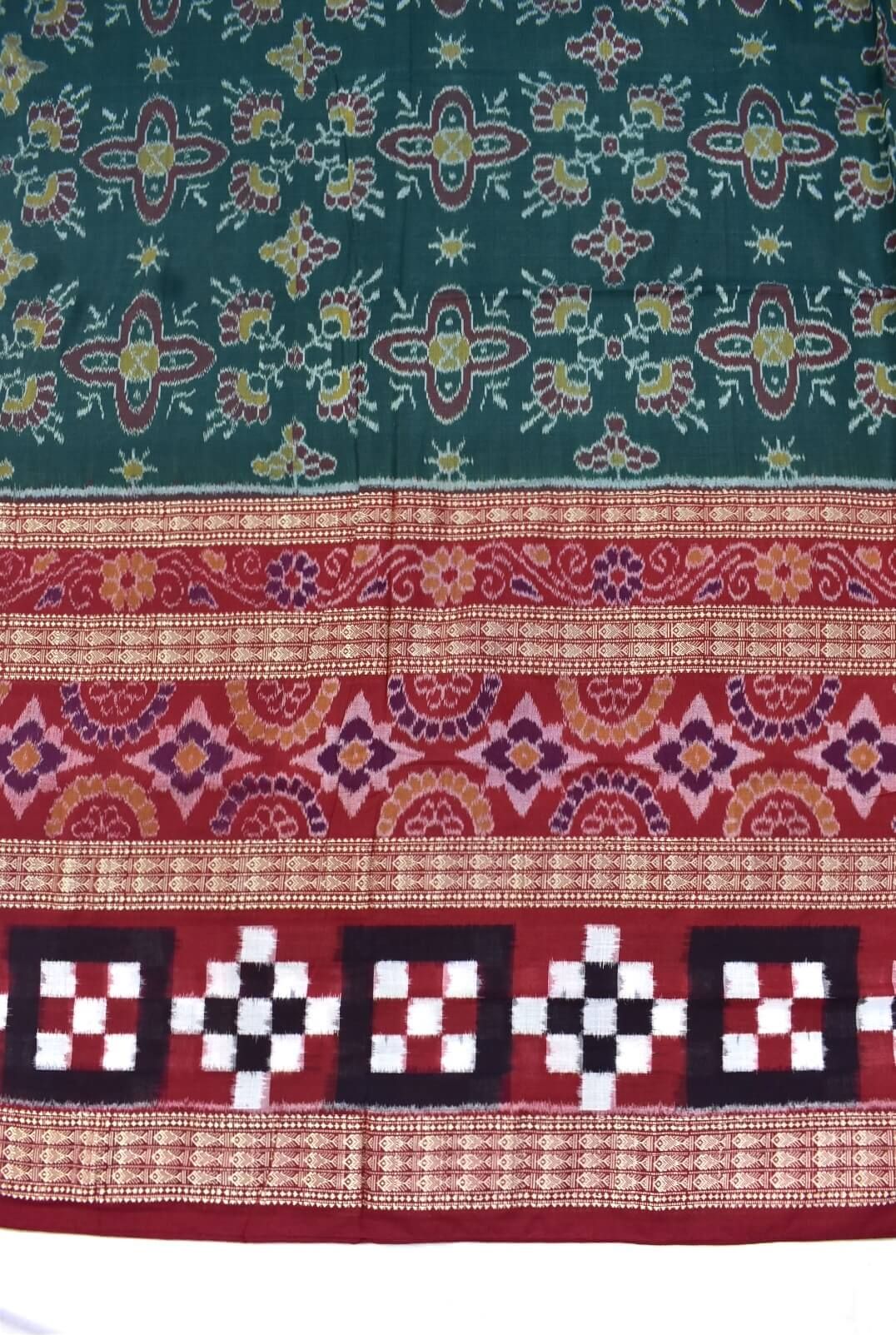 Green-Red Pasapali Border Design Sambalpuri Handloom Bandha Cotton Saree