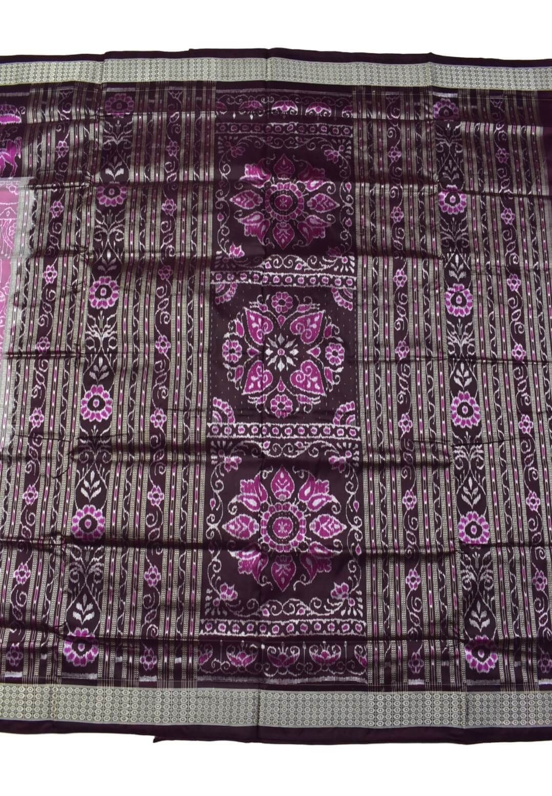Lite Pink-Coffe Combination Sambalpuri Handloom Bandha Silk Saree