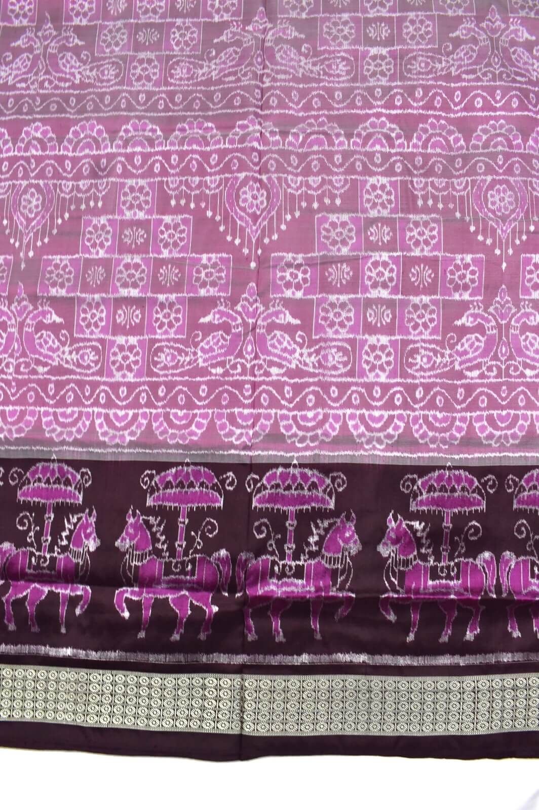 Be the first to review “Lite Pink-Coffe Combination Sambalpuri Handloom Bandha Silk Saree”