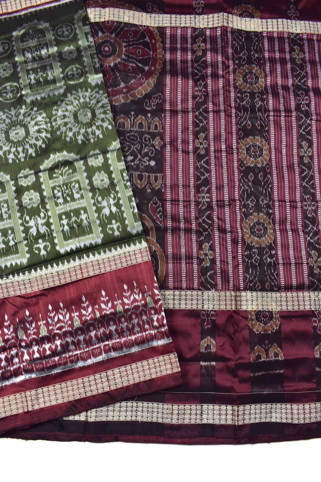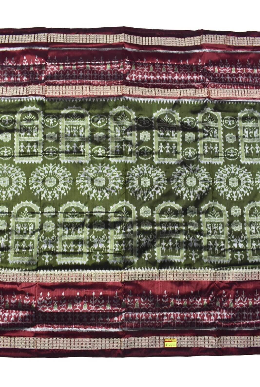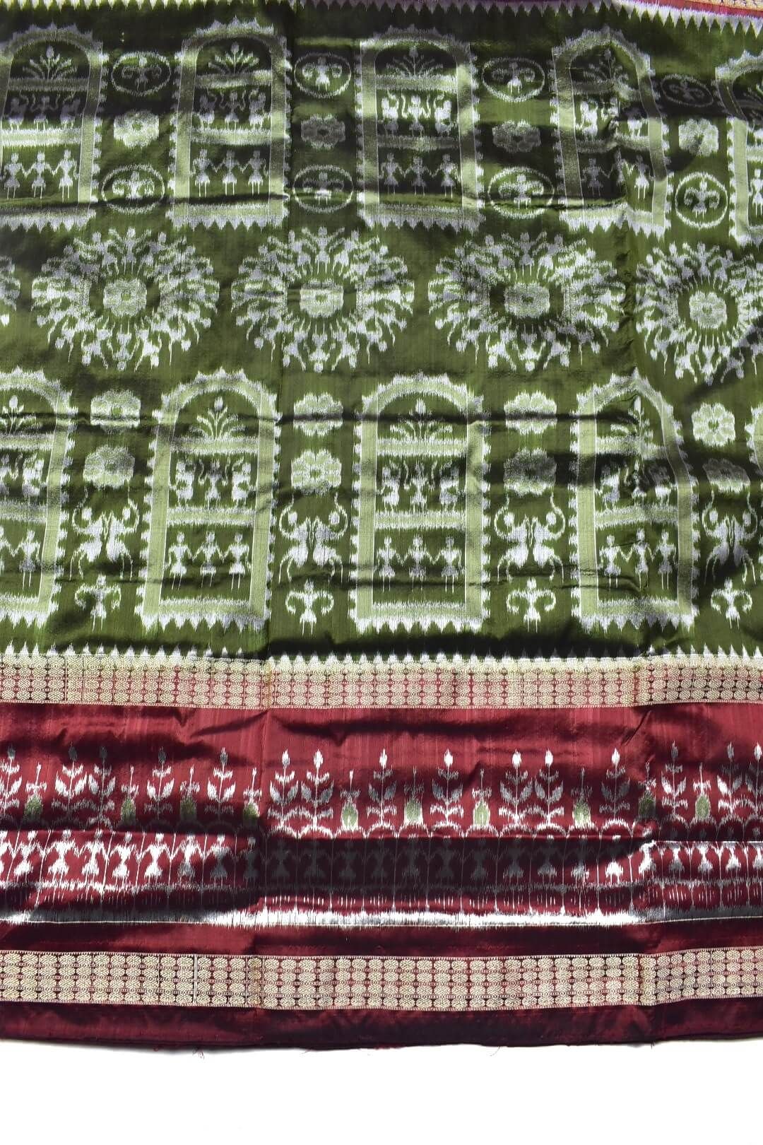 Mahendi Colour Double Border Sambalpuri Handloom Bandha Silk Saree