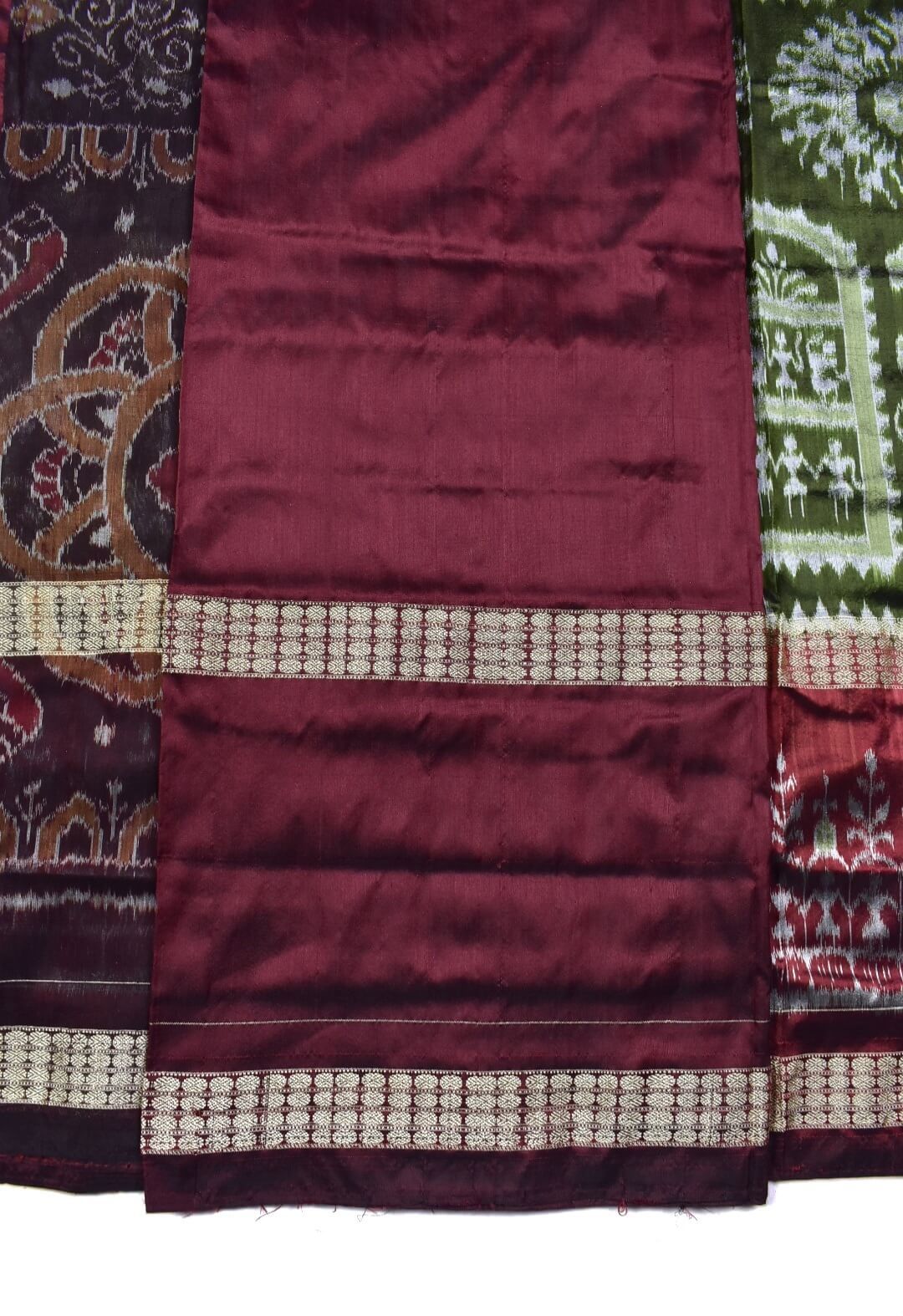 Be the first to review “Mahendi Colour Double Border Sambalpuri Handloom Bandha Silk Saree”