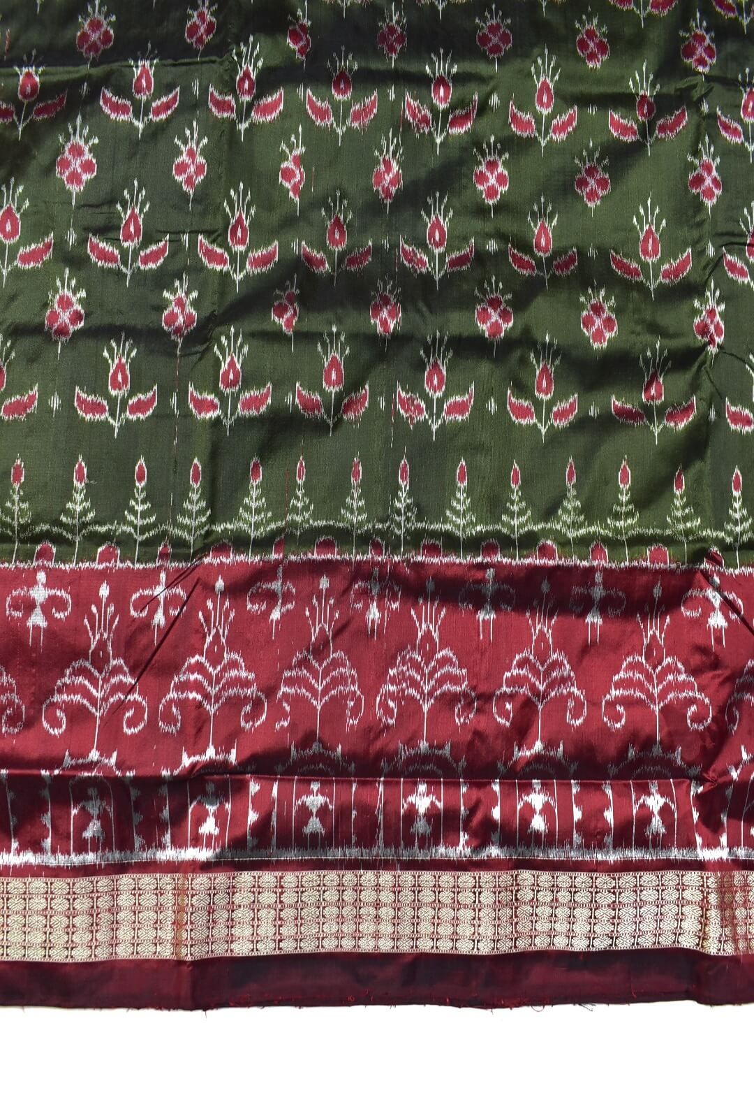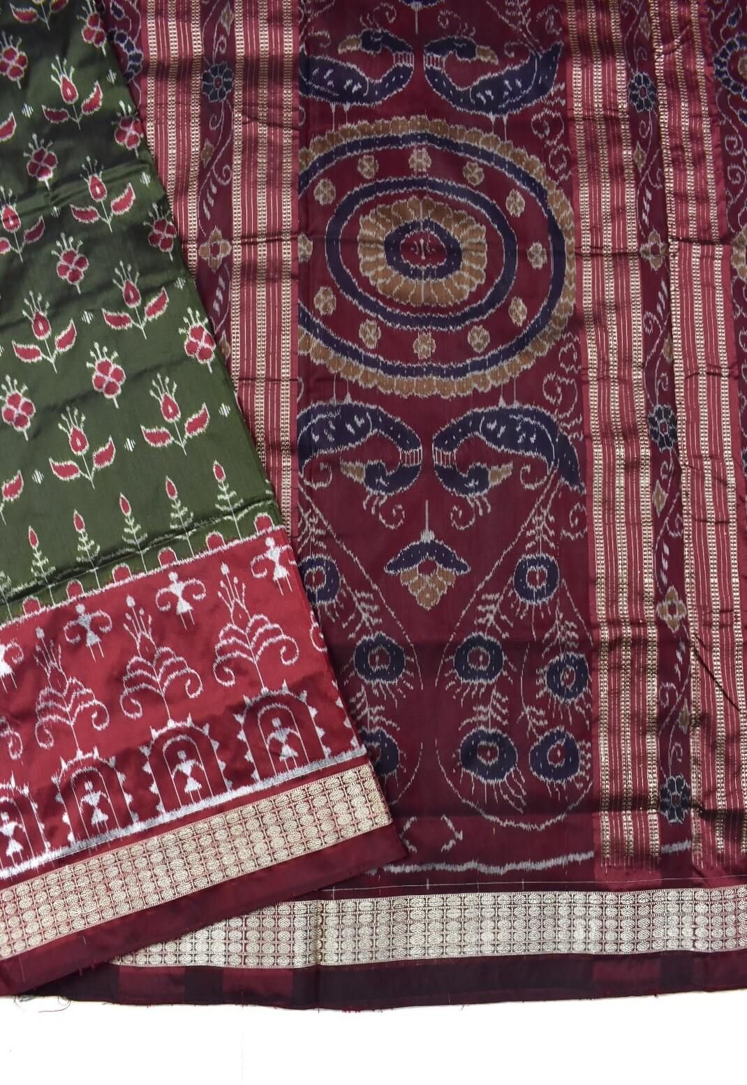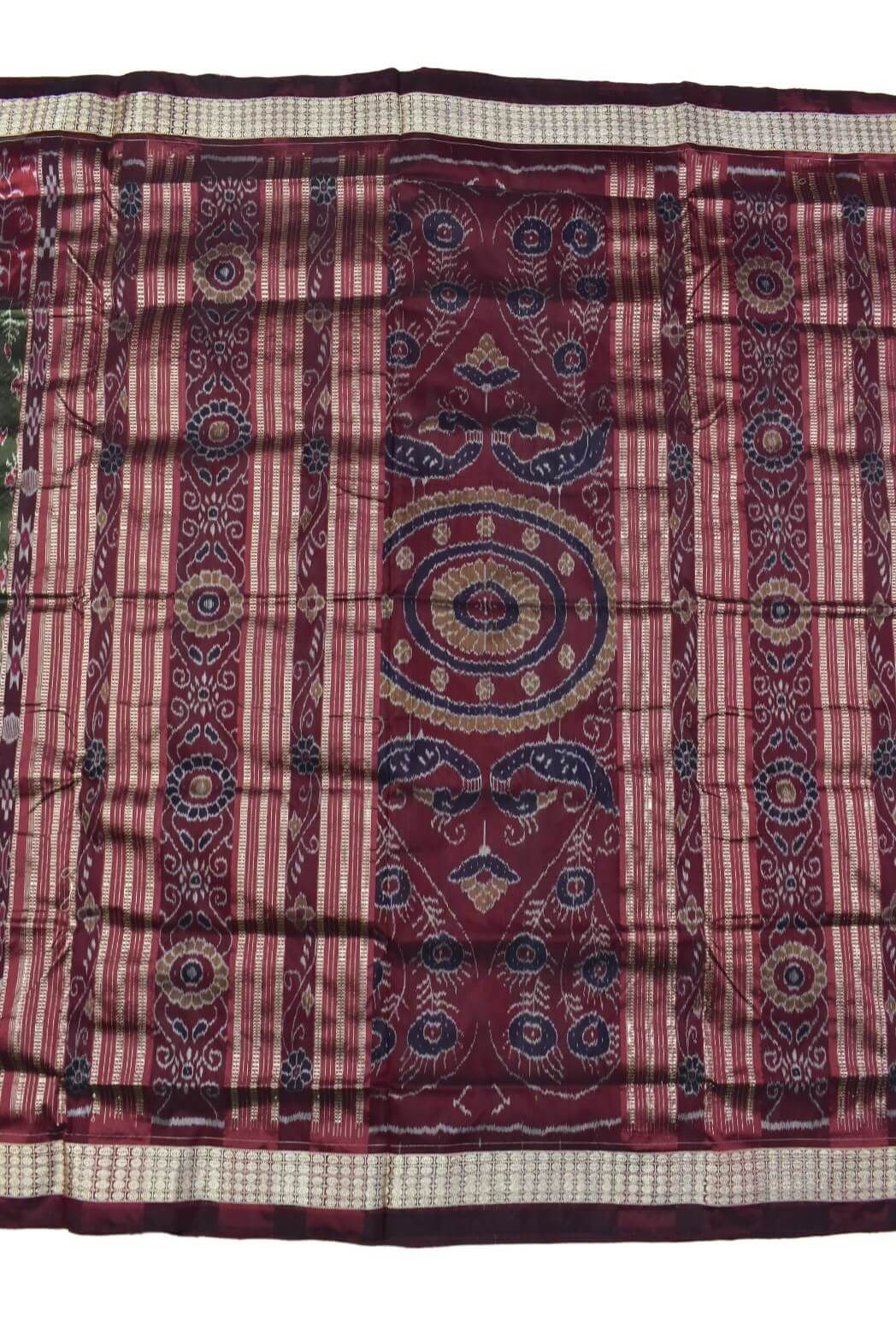 Mahendi-Maroon Combination Patli Design Sambalpuri Handloom Silk Saree