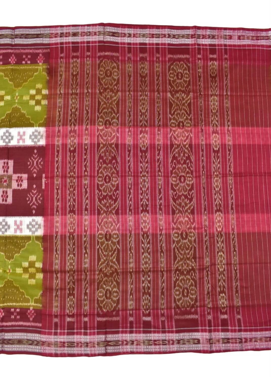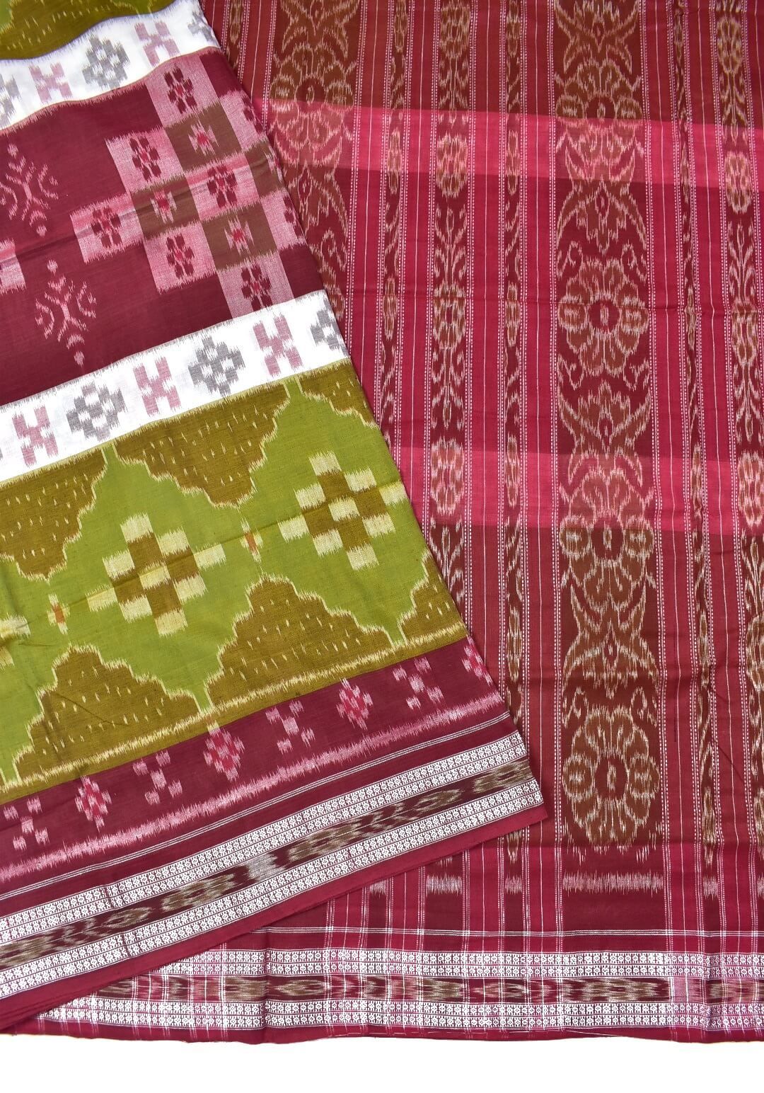 Mahendi-Maroon Pasapali Design Sambalpuri Handloom Mania Bandha Cotton Saree