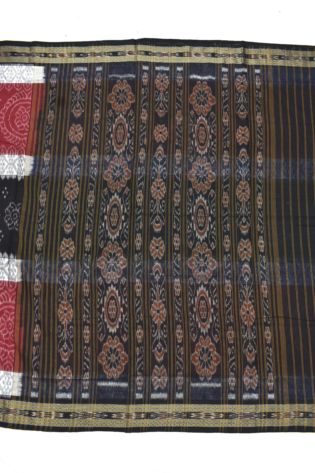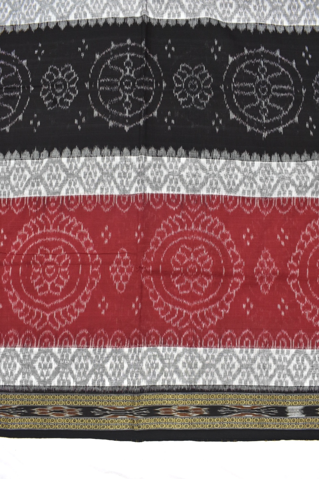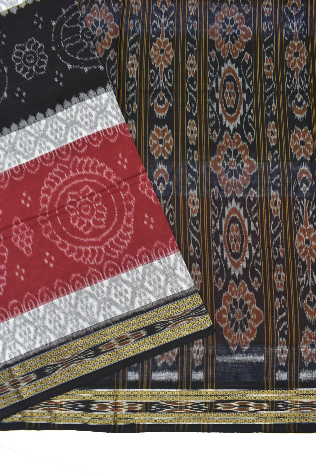 Maroon-Black Sambalpuri Handloom Maniabandha Cotton Saree