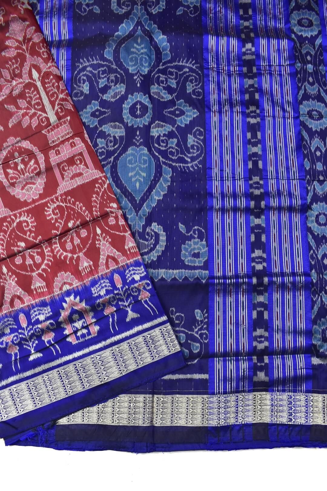 Maroon-Blue Combination Sambalpuri Handloom Bandha Silk Saree